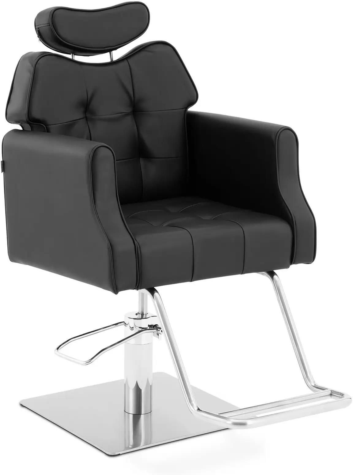 Stwórz wygodną przestrzeń dla swoich klientów z fotelem fryzjerskim Chard Black i dodaj stylowy akcent do swojego salonu. Subtelny design w kolorze czarnym wtapia się w każde otoczenie. Krzesło fryzjerskie z podnóżkiem, zagłówkiem i odchylanym oparciem zachwyci Cię i Twoich gości maksymalnym komfortem. Sprawdzi się zarówno w salonie fryzjerskim, tatuażu, jak i kosmetycznym. Twoi klienci będą bardzo wygodnie siedzieć na ergonomicznym fotelu fryzjerskim. Zapewniają to wysokie podłokietniki oraz pianka, którą wypełniono mebel. Jest miękka i zachowuje swój kształt. Trwała tapicerka imitująca skórę jest łatwa w czyszczeniu, a także nie pochłania wody i jest odporna na kurz. Wysokość fotela fryzjerskiego sprawnie ustawisz w zakresie 920 - 1070 mm za pomocą pompy hydraulicznej. Ponadto krzesło obrócisz o 360°. W ten sposób w kilku prostych krokach uzyskasz optymalną pozycję roboczą, która nie będzie Cię męczyć nawet przez wiele godzin pracy. Aby zapewnić klientom właściwy komfort, ustaw zagłówek w zakresie 0-125 mm i przechyl oparcie do wygodnej pozycji. Stelaż fotela fryzjerskiego wykonany jest z wytrzymałej i eleganckiej stali nierdzewnej. Solidna konstrukcja bezpiecznie utrzymuje obciążenie do 200 kg, co przekłada się na wysoki poziom trwałości. Duża podstawa o średnicy 45 cm zapewnia dodatkową stabilność. Gładkie powierzchnie ze stali nierdzewnej podkreślają stylowy wygląd. Wygoda – ergonomiczne siedzisko z piankowym wypełnieniem oraz regulowanym oparciem i zagłówkiem Regulacja – wysokość siedziska ustawisz w zakresie 920 - 1070 mm za pomocą pompy hydraulicznej, fotel obrócisz też o 360° Trwałość – wytrzymały fotel do mycia włosów ze stali nierdzewnej z dużą podstawą Łatwa pielęgnacja – tapicerka ze skóry syntetycznej jest szczególnie odporna na zabrudzenia Nowoczesność – subtelny design z błyszczącymi akcentami ze stali nierdzewnej Regulowana wysokość: 920 - 1070 mm Podnóżek / zagłówek / obrót o 360° Stabilna konstrukcja ze stali nierdzewnej, Tapicerka ze sztucznej skóry (PVC) Maksymalne obciążenie: 200 kg