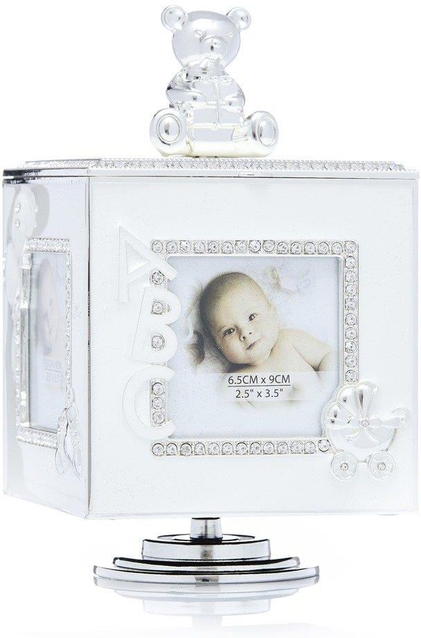 Idealna pamiątka Chrztu Św. lub prezent urodzinowy na pierwszy roczek dla dziecka. Karuzela wykonana jest z masy perłowej. Pozytywka odgrywa wesołą melodię cieszącą każdego szkraba. Na każdej ze ścian miejsce na fotografię dziecka. Otwierane wieko z powierzchnią na grawer, w środku pudełka przestrzeń na biżuterię i inne drobiazgi Wysokość karuzeli: około 16 cm Wymiary zdjęcia: około 5x5 cm Prezentacja produktu: