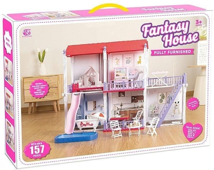 domek dla lalek, plastikowy, wy.po rozłożeniu 104x74x60cm, z meblami; 72x52x12cm Wydawnictwo: ADAR Opakowanie: pudeĹko,