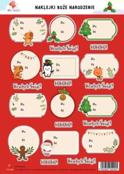 All4Kids Naklejki Na Prezenty Boże Narodzenie A4 Zator