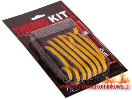 Zestaw sznur uszczelniający 10x3mm+klej do kominka Producent: Zestaw naprawczy THERMO KIT (sznur płaski + klej) do uszczelniania szyb wkładów kominkowych. - wymiar sznura: 10 x 3 mm - długość : 2 m Zestaw zawiera sznur ognioodporny klej wytrzymujący do 1400 °C Sposób użycia Usunąć pozostałości wcześniejszego uszczelnienia. Dokładnie oczyścić powierzchnię w miejscu uszczelnienia. Nałożyć klej cienką warstwą na oczyszczoną powierzchnię. Dopasować sznur i mocno docisnąć. Pozostawić do wyschnięcia na 2 - 3 godzin.