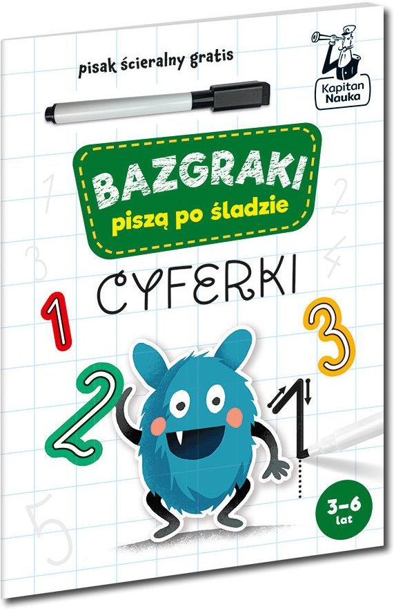 Poznawanie cyfr, ćwiczenie motoryki małej i doskonała zabawa! Ten zeszyt wprowadzi dziecko w niesamowity świat cyferek – jest to wstęp do nauki matematyki. W środku znajdziecie wiele zadań wspierających umiejętność grafopercepcji, takich jak rysowanie cyferek po śladzie. Dziecko będzie mogło również poćwiczyć pisanie w kratkach. Aby nauka matematyki i poznawanie cyferek nie były nudne, zadania są przeplecione ciekawymi łamigłówkami, które dadzą maluchowi mnóstwo frajdy i pomogą w doskonaleniu motoryki małej. Do zeszytu dołączony jest pisak ścieralny – w zestawieniu z odpowiednio przygotowanymi zadaniami pozwoli dziecku pisać, zmazywać, a także popełniać błędy i próbować jeszcze raz. Poznawanie cyferek to doskonała zabawa, której towarzyszą Bazgraki – te niesamowite stworki wspierają malucha w nauce i sprawiają, że zamienia się ona w wartościową zabawę. W książeczce: liczenie do 10, pisanie po śladzie i w kratkach, łamigłówki, które zainteresują dziecko. Kapitan Nauka to marka, która wspiera rozwój i edukację dziecka przez kreatywną zabawę. Nasze produkty dostosowane są do potrzeb maluchów, przedszkolaków oraz uczniów i rozwijają kluczowe umiejętności, m.in. naukę mowy, czytanie, liczenie czy mnożenie. Są świetną alternatywą dla smartfona czy komputera, a czas spędzony przy wspólnych rozgrywkach w gronie rodziny lub rówieśników wzmacnia więzi i umiejętności komunikacyjne. Nad zawartością merytoryczną czuwają eksperci: nauczyciele, pedagodzy, psycholodzy i terapeuci. Bazgraki piszą po śladzie Cyferki. Wprowadzenie do nauki matematyki dla najmłodszych Ten interaktywny zeszyt to doskonałe narzędzie, które wprowadza dzieci w fascynujący świat cyfr. Dzięki zabawnym zadaniom i ćwiczeniom, maluchy nie tylko poznają cyfry, ale także rozwijają swoje umiejętności motoryczne, co czyni naukę matematyki przyjemnością! Dla kogo jest ta książka? Dzieci w wieku przedszkolnym Rodzice poszukujący materiałów edukacyjnych dla swoich pociech Nauczyciele przedszkoli i wczesnej edukacji Opiekunowie i terapeuci wspierający rozwój dzieci Co zyskasz dzięki tej publikacji? Rozwój umiejętności grafopercepcji: Ćwiczenia polegające na rysowaniu cyfr po śladzie wspierają rozwój motoryki małej. Interaktywna nauka: Dzięki dołączonemu pisakowi ścieralnemu dzieci mogą pisać, zmazywać i próbować ponownie, co sprzyja nauce przez zabawę. Łamigłówki i zadania: Ciekawe łamigłówki sprawiają, że nauka cyfr staje się ekscytującą przygodą. Wprowadzenie do matematyki: Zeszyt stanowi doskonały wstęp do nauki matematyki, ucząc liczenia do 10. Kluczowe tematy i obszary Ćwiczenia z cyframi i liczeniem Motoryka mała i grafopercepcja Interaktywne zadania edukacyjne Łamigłówki dla dzieci Wprowadzenie do matematyki dla przedszkolaków O Wydawcy Kapitan Nauka – marka znana z wysokiej jakości materiałów edukacyjnych, które łączą naukę z zabawą, wspierając rozwój dzieci w różnorodnych obszarach. Producent/osoba odpowiedzialna za bezpieczeństwo produktuEDGARD Mariusz JachimczukBelgijska 11/602-511 Warszawawydawnictwo@edgard.pl48 22 8531138