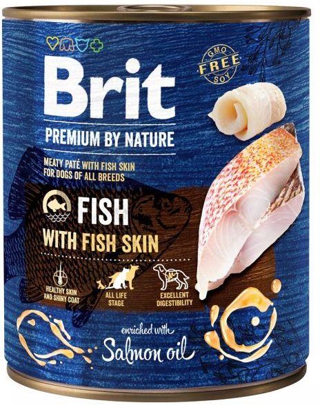 Brit Premium by Nature Fish with Fish Skin   PEŁNOPORCJOWA KARMA MOKRA, W POSTACI PASZTETU DLA DOROSŁYCH PSÓW. RYBA Z RYBIĄ SKÓRĄ. Doskonałe uzupełnienie karmy suchej. Pełnoporcjowa karma, przekąska lub dodatek do karmy suchej dla psów dorosłych wszystkich ras. Zawiera kolagen dla wzmocnienia zdrowych stawów, olej z łososia, owoce i zioła. Dzienna dawka może się różnić w zależności od wielkości, wieku i aktywności psa oraz środowiska w którym przebywa. Przy podaniu karma powinna mieć temperaturę pokojową. Przy podawaniu jako dodatek dla urozmaicenia diety należy odpowiednio zmniejszyć zalecaną dzienną dawkę. Należy zapewnić psu dostęp do świeżej wody. Przechowywać w suchym i chłodnym miejscu. Po otwarciu przechowywać w lodówce. Wysoka przyswajalność, wyjątkowy smak i aromat Zbilansowana ilość składników odżywczych, witamin i minerałów Bez ZBÓŻ – Bez SOLI – Bez GMO a Energia Metaboliczna 1 000 kcal/kg SKŁAD ryba 36 %, bulion rybny 35,5 %, kurczak 22 %, skóra z ryby 4 %, olej z łososia 1,5 %, minerały 1 %. SKŁADNIKI ANALITYCZNE białko surowe 8,5 %, tłuszcz surowy 5,0%, włókno surowe 0,3%, popiół surowy 2,8 %,  wilgotność 78,0%, wapń 0,3%, fosfor 0,3%, sód 0,5%.  DODATKI DIETETYCZNE W 1KG witamina D3 (E671) 200 j.m., witamina E (3a700) 100 mg, cynk (3b606) 10 mg,  żelazo (3b103) 8 mg, mangan (3b502) 2 mg, jod (3b201) 0,5 mg, miedź (3b405) 0,5 mg. SPRAWDŹ INNE PRODUKTY BRIT PREMIUM BY NATURE Profilaktyka przez żywienie - to główna zasada, którą spełniają starannie skomponowane karmy Brit. Wiemy, że zwierzęta domowe są w równym stopniu jak my sami narażone na stres i poważne choroby, dlatego z miłości do nich opracowaliśmy unikalną recepturę, opartą na wyselekcjonowanych składnikach. Wierzymy, że odpowiednia dieta ma ogromne znaczenie dla zdrowia i kondycji naszych czworonożnych przyjaciół. Stąd w karmach Brit znajdziecie tylko to, co najlepsze: wysokiej jakości mięso, ryby, warzywa i owoce, zioła oraz składniki funkcjonalne.