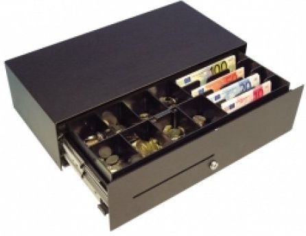 cash drawer, front opening, 453x130x224mm, 4 note compartments, 8 coin compartments, 1 receipt compartment, 3-pos. lock, different locking, 75 series, colour: anthracite...
