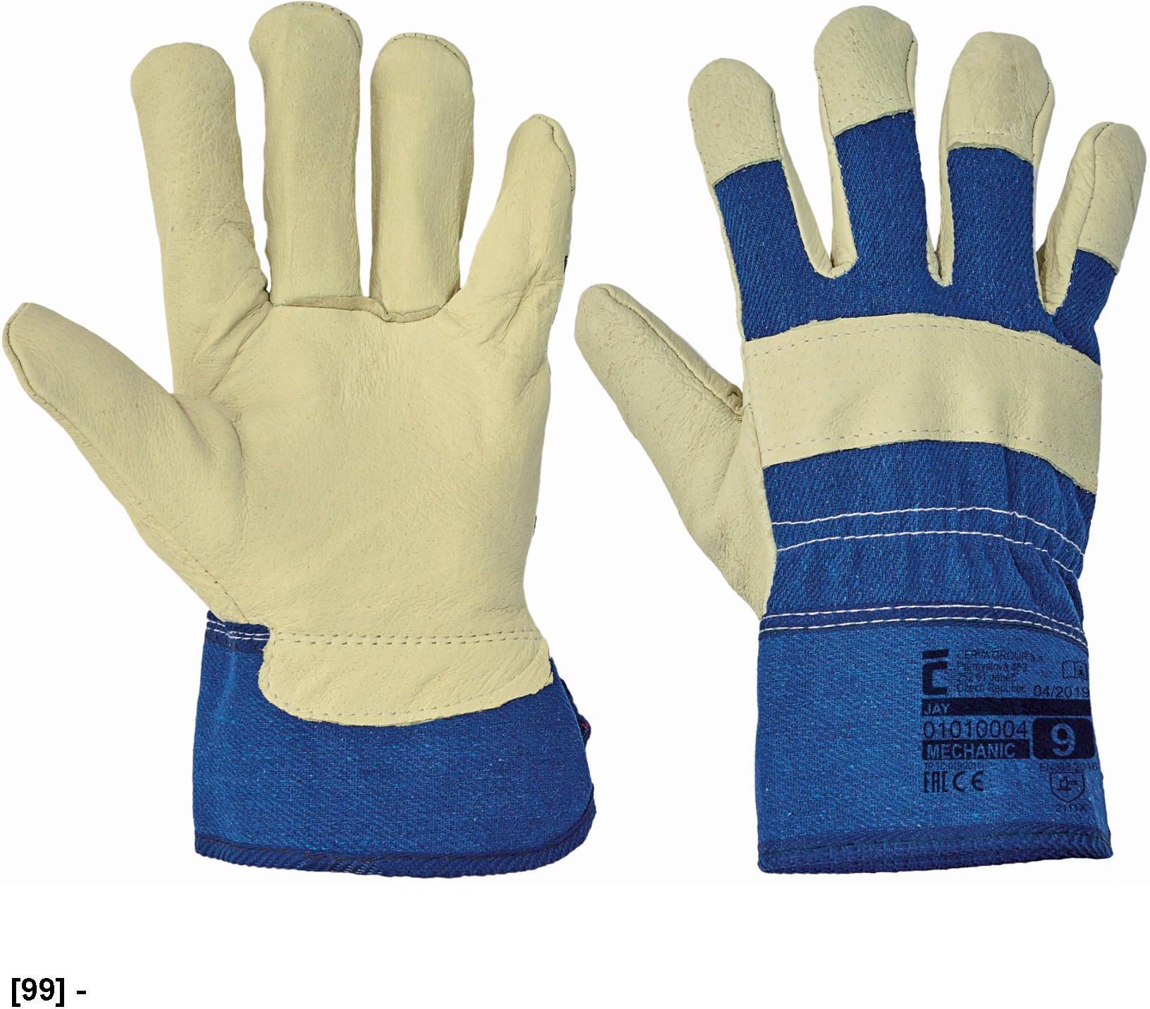 Minimalna ilość zamówienia to opakowanie zawierające 12 par (sprzedaż tylko w pełnch opakowaniach).Cena podana jest za parę rękawic. JAY Rękawice robocze w częsci dłonicowej wykonane ze świńskiej skóry , materiał na grzbietach i mankietach. Marka: CERVA