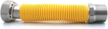 Wąż DO GAZU rozciągliwy 1/2x1/2 , 500-1000mm wz Elastyczne rozciągliwe węże do gazu CONAGAS Elastyczne rozciągliwe węże do gazu CONAGAS to najnowocześniejsze rozwiązanie techniczne w Europie przeznaczone do stosowanych w instalacjach gazowych, służą podłączeniu urządzeń takich jak m.in. : kotły C.O., piece, bojlery, podgrzewacze wody, termy, nagrzewnice itp. Myślą przewodnią konstruktorów węży do gazu CONAGAS było wyeliminowanie przenoszenia drgań z urządzeń grzewczych na instalację gazową by chronić ją przed rozszczelnianiem. Dzięki zastosowaniu w wężach gazowych nowoczesnych materiałów konstrukcyjnych-stali kwasoodpornej AISI 316 L oraz najnowszej technologii w produkcji, przewody elastyczne do gazu CONAGAS spełniają najwyższe europejskie wymagania eksploatacyjne. W trakcie montażu węża do gazu istnieje możliwość dowolnego kształtowania przewodu oraz jego rozciągania w granicach do 100% co ma bardzo praktyczne zastosowanie - znacznie skraca i ułatwia prace montażowe, instalacyjne powoduje tym samym zmniejszenie kosztów wykonania instalacji. Elastyczny metalowy rozciągliwy przewód do gazu CONAGAS ma harmonijkową budowę co umożliwia zarówno kompensację drgań pochodzącą od pracy urządzeń grzewczych, jak również kompensację naprężeń liniowych powstających w trakcie normalnej eksploatacji instalacji . Firma As-gaz oferuje elastyczne rozciągliwe przewody do gazu CONAGAS w żółtej osłonie termokurczliwej co podwyższa walory estetyczne produktu. Oferta handlowa to kilka rozmiarów długości od 130 mm do 1000 mm oraz średnic 1/2”, 3/4” i 1”. TABELA WYMIARÓW: