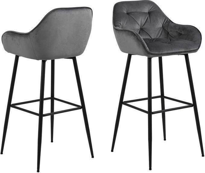 D2 Aksamitny Pikowany Stołek Barowy Brooke Jasny Szary 6899 Zator