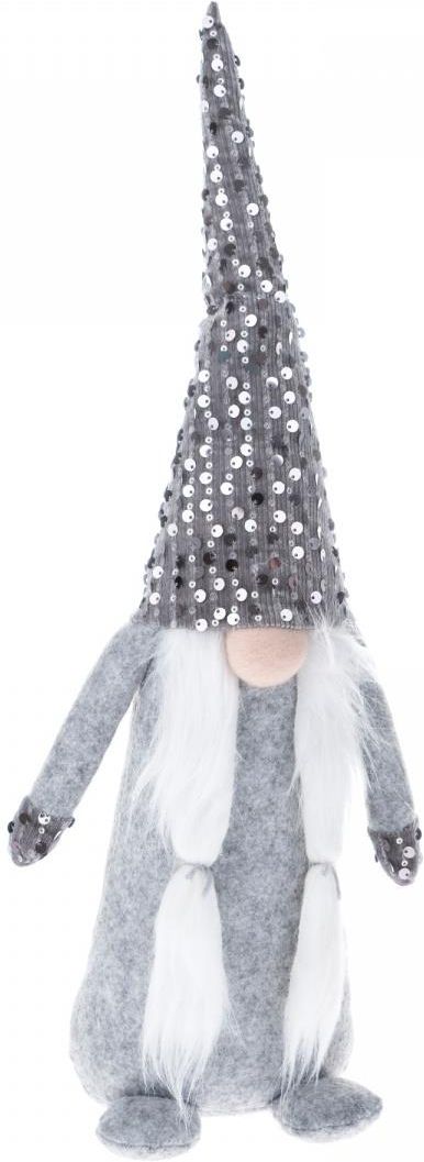 Duży skrzat z filcu szary stojący figurka prezent na święta (15064) Wyjątkowa, stojąca figurka wykonana z materiału tzw. filcu w kształcie skrzata. Wysokość figurki 53 cm. Uroczy szary krasnal, z długimi białymi włosami, szarą czapką zdobioną cekinami prezentuje się zjawiskowo. Święta …