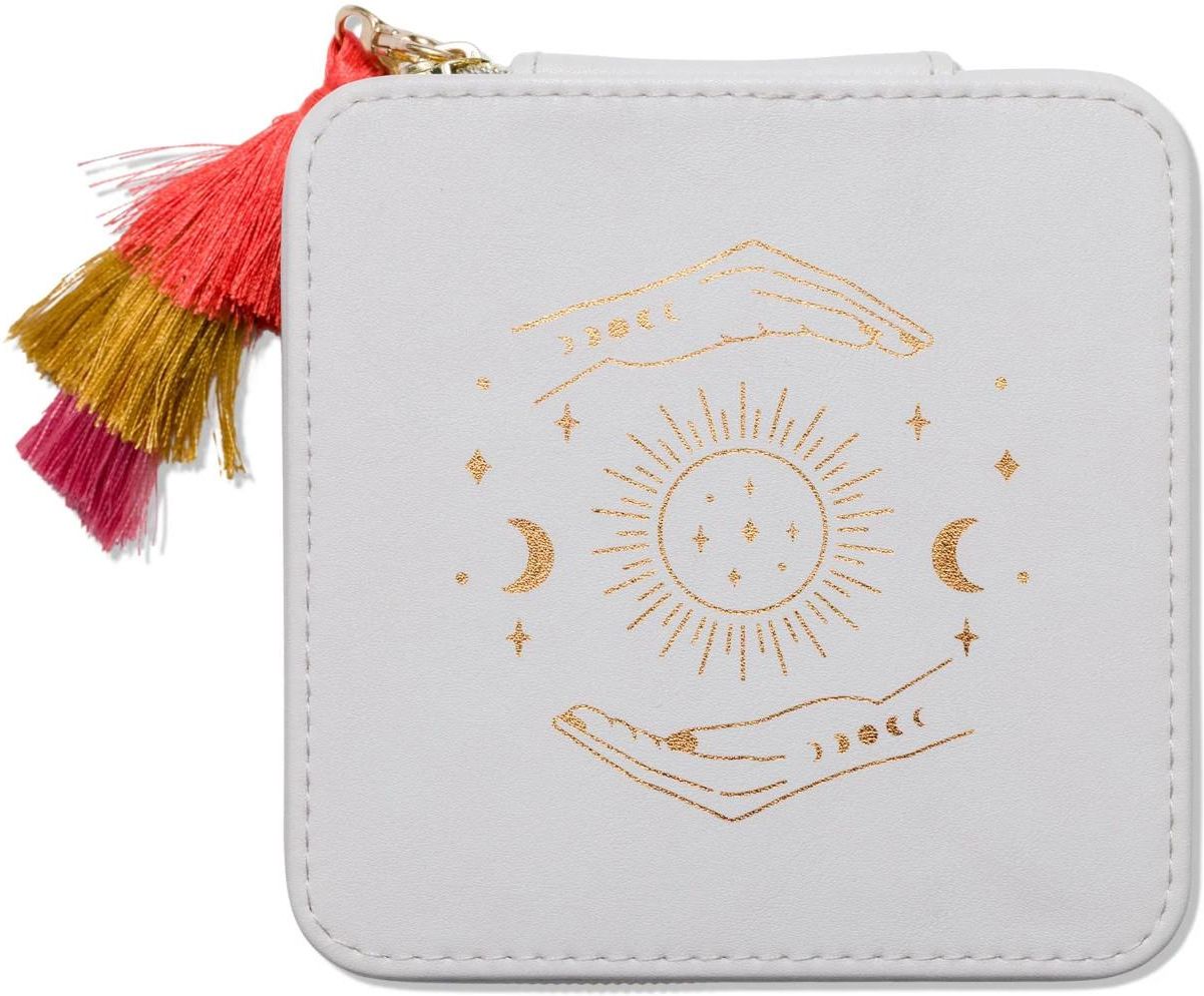 Etui na biżuterię Celestial | DESIGNWORKS INK Trzymaj swoją biżuterię na swoim miejscu dzięki naszemu etui na biżuterię! Niezwykle elegancka mała szkatułka etui na biżuterię wykonana z najwyższej jakości skóry ekologicznej. To etui idealnie pasuje do torby lub bagażu, ułatwiając zlokalizowanie cennych przedmiotów. Miękkie zamszowe wnętrze utrzymuje biżuterię w bardzo dobrym stanie, jednocześnie oferując dużo miejsce na pierścionki, kolczyki, naszyjniki, bransoletki i nie tylko! EAN: 0840214809705