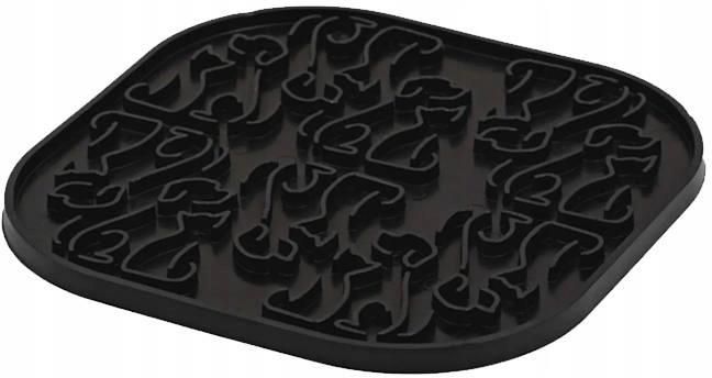 Dolina Noteci LOLLIPOP mata taca do lizania dla psa czarna Dolina Noteci LOLLIPOP antystresowa mata tacka do lizania. - relaksuje- odstresowuje- spowalnia jedzenie Mata do lizania to idealne rozwiązanie podczas karmienia Twojego psa. Spowolni jedzenie, jeśli pupil spożywa karmę za szybko, zaś jeśli jest smakoszem, który uwielbia delektować się posiłkiem, to mata z pewnością go uatrakcyjni. Wykonana jest z miękkiego tworzywa, które stabilnie trzyma się podłoża, więc przy jedzeniu nie będzie się przesuwać. Wyższy zewnętrzny bok maty chroni posiłek przed wypadaniem poza nią. Idealnie sprawdzi się do zabawy w lizanie i pobieranie pokarmu ze specjalnie zaprojektowanych wypustek, które masują język czworonoga, dostarczając mu dodatkowych wrażeń sensorycznych. Taki sposób podania karmy działa na psa uspokajająco i relaksująco. Mata dostępna jest w trzech kolorach: beżowym, jasnoszarym i czarnym. Wymiar produktu: 185x185x6 mm W tej ofercie kupujesz matę czarną.