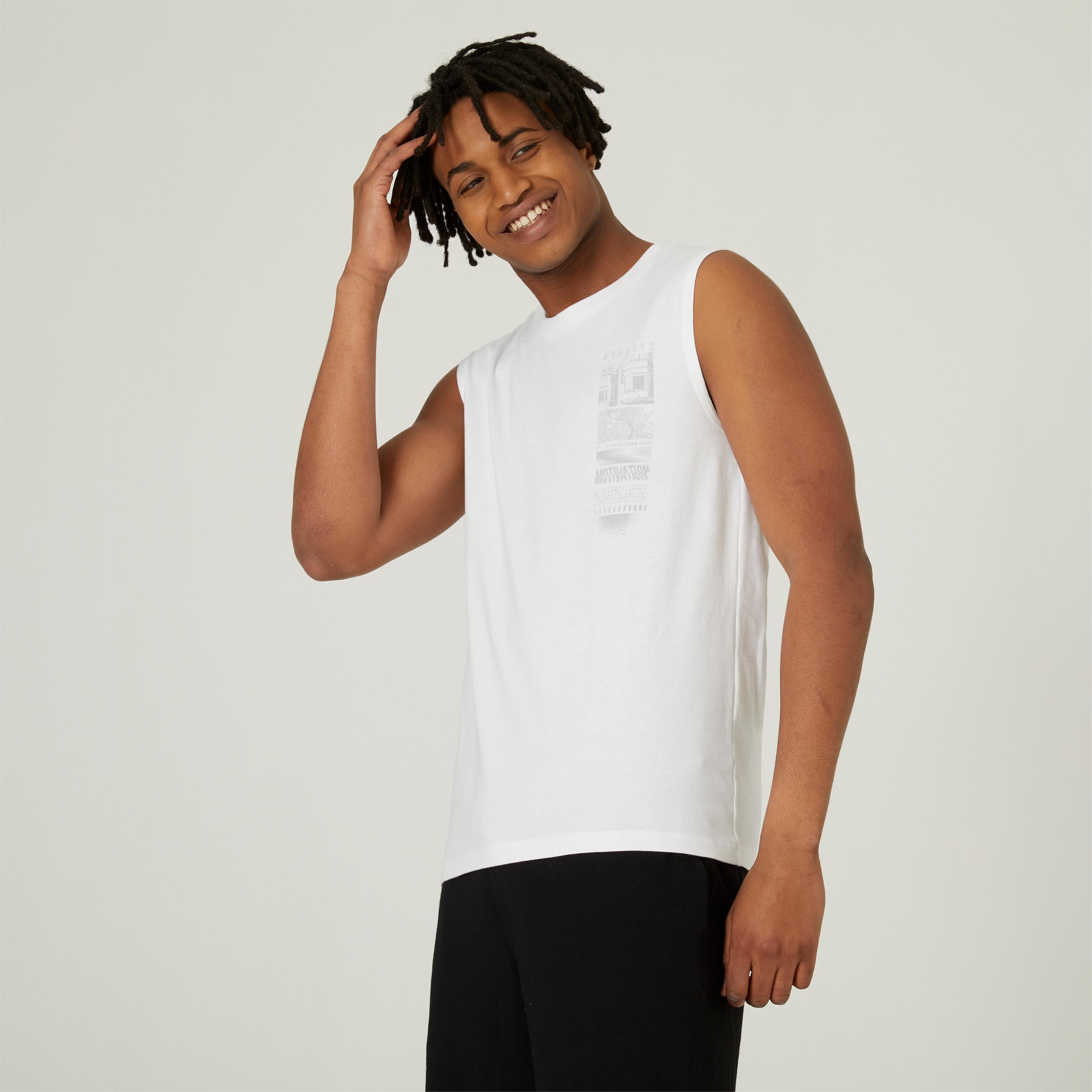 Domyos Koszulka Bez Rękawów Męska Nyamba Gym&Pilates 500 Regular Biały Zator