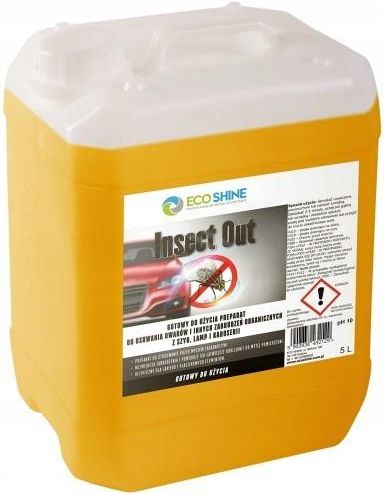 INSECT OUT Preparat do usuwania owadów i innych zabrudzeń organicznych z szyb, lamp i karoserii. Właściwości: Rozmiękcza zabrudzenia i powoduje ich łatwiejsze odklejanie od mytej powierzchni. Bezpieczny ale lakieru i mytych powierzchni. Preparat do stosowania przed myciem zasadniczym. Rodzaj czyszczenia ręczne, pianowe Zastosowanie Usuwanie owadów i innych zabrudzeń organicznych z szyb, lamp i karoserii. Odradzane zastosowania brak Sposób użycia i dozowania Spryskać czyszczone powierzchnie lub nanieść szmatką. Odczekać 2-3 minuty, przetrzeć gąbką lub szmatką i dokładnie spłukać wodą pod wysokim ciśnieniem lub przejść do mycia zasadniczego auta. Bezpieczeństwo stosowania Unikać kontaktu z oczami. Po użyciu dokładnie umyj ręce. Dane techniczne: Termin trwałości: 24 miesiące. Gęstość: 1,0 g/ml. pH koncentratu: 10 Dostępne opakowania 1 litr ze spryskiwaczem, 5 litrów.