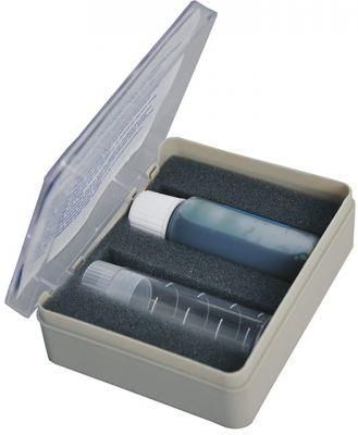 Ecowater test twardości wody. Kontroluj jakość wody sam. Zaawansowany tester twardości wody metodą kropelkową firmy ECOWATER. Sprawdzisz twardość wody z dokładnością do 0,5 ºdH. Tester wystarcza na około 50-60 badań. Tester twardości wody przydaje się m.in. w celu właściwego ustawienia parametrów zmiękczacza do wody. Pozwala tez sprawdzić skuteczność zmiękczania wody. Instrukcja obsługi: 1. Napełnij pojemnik pomiarowy badana wodą do poziomu 5 ml 2. Dodawaj odczynnik po jednej kropli, do momentu aż kolor zmieni się z czerwonego na zielony. Liczba dodanych kropli odpowiada twardości wody. 3. 1 kropla = 1ºdH. Całość zapakowana w eleganckie etui, ułatwiające bezpieczny transport.