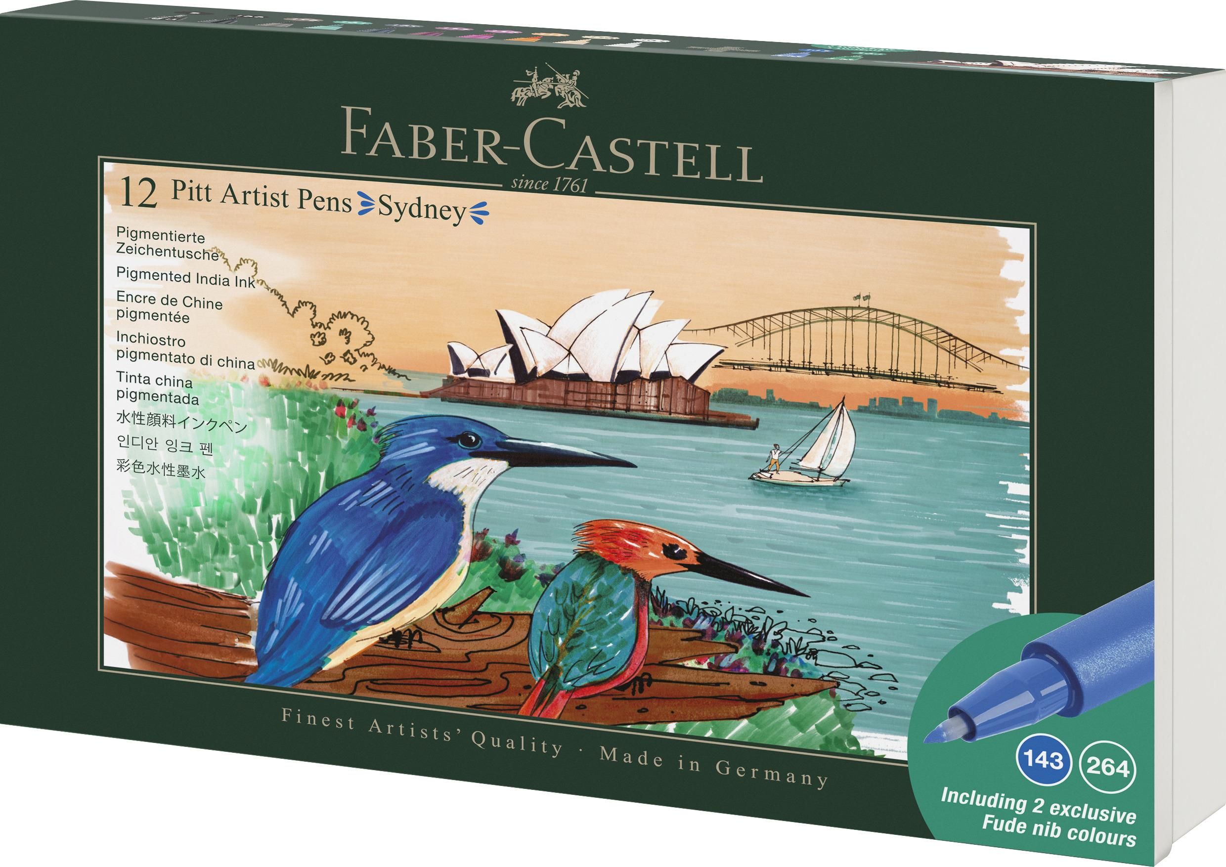 Zestaw pisaków artystycznych Faber-Castell Pitt Artist Pen Sydney 12 szt. mix kolorów z różnymi końcówkami w eleganckim opakowaniu. Pisaki te to połączenie zalet tradycyjnych rysunków wykonywanych tuszem z nowoczesnym, łatwym w użyciu narzędziem. Tusz nadaje rysunkom wyrazistości i trwałości, dając …