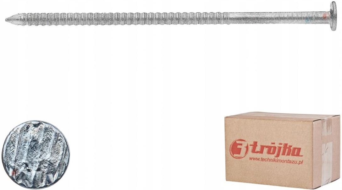 Gwoździe pierścieniowe ocynk biały - 3.0x50 - 5kg OPIS: Gwoździe Pierścieniowe Ocynkowane TRÓJKA wykonane są z twardego metalu trzpień zaostrzony z jednej strony, z drugiej zakończony płaskim łbem. Gwóźdź służy do produkcji palet, więźb dachowych, do elementów wymagających dużej wytrzymałości. …