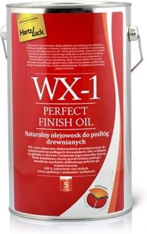 HartzLack WX-1 Perfect Finish Oil POJEMNOŚĆ: 1L KOLOR: BEZBARWNY OLEJ DO BLATÓW HartzLack WX-1 0,2L 100% naturalny, bezrozpuszczalnikowy olejowosk o wydajności ponad 50% większej niż dostępne rozwiązania na rynku. WX-1 zawiera wosk Carnuba, dzięki czemu podłoga nim zabezpieczona ma perfekcyjną ochronę przed wodą i wilgocią. CECHY SZCZEGÓLNE WX-1 składa się w 100 % z naturalnych olejów i wosków Pozwala na uzyskanie bardzo wysokiej twardości powierzchni po wypolerowaniu dzięki zastosowaniu wosku carnuba WX-1 szlachetnie wydobywa i podkreśla głęboki rysunek słojów drewna Bardzo wysoka wydajność do 50% wyższa niż porównywalnych produktów konkurencyjnych WX-1 jest w 100% bezrozpuszczalnikowy Nadaje się do aplikacji na gotowe olejowane podłogi warstwowe Najwyższy stopień bezpieczeństwa dla użytkownika - produkt zgodny z normą PN-EN 71-3 (kontakt z żywnością) Wydajność: 20 - 25 m2/L (średnia wydajność podana przy zastosowaniu dwóch warstw oleju) PRZEZNACZENIE Małe opakowanie olejowosku 0,2L to idealna ilość do zabezpieczenia np. blatu kuchennego. WX-1 jest bardzo odpornym, wysokowydajnym olejowoskiem o 100 % zawartości olejów i ciał stałych – nie zawiera rozpuszczalników. Przeznaczony jest do zastosowania na podłogach drewnianych. Oleje wchłaniają się głęboko w drewno, wzmacniają jego strukturę i podkreślają naturalne barwy. Wosk dodatkowo chroni powierzchnię podłogi i umożliwia uzyskanie satynowego połysku po wypolerowaniu. WX-1 jest najdoskonalszym rozwiązaniem zabezpieczającym, które sprosta większości wyzwań przed jakimi stawiana jest podłoga drewniana. Gwarantuje perfekcyjną ochronę i piękny efekt, przy niezwykle dużej wydajności. Produkt zgodny z normą PN-EN 71-3 (kontakt z żywnością), dzięki czemu w pełni bezpieczne i możliwe jest zastosowanie oleju na drewnianych blatach kuchennych, deskach do krojenia chleba czy galanterii drewnianej majacej kontakt z żywnością. Olej doskonale sie sprawdza do zabezpieczenia drewnianych dzieciecych zabawek. Produkt z uwagi na duża odporność na wilgoć doskobnale można wykorzystać do zabezpieczenia derwnianych elementów w łazience czy kuchni. WX-1 został doceniony przez architektów i uznany przez nich za numer jeden wśród olejów do podłóg drewnianych stając się laureatem nagrody DOBRY DESIGN