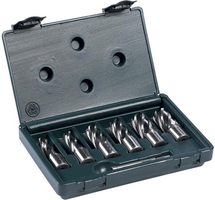 Zestaw frezow trepanacyjnych 2 x 14/18/22 x 30 mm + trzpień centrujący, 7szt. Hikoki 754496 Zestaw frezów trepanacyjnych Hikoki 754496 to specjalistyczny osprzęt przeznaczony do obróbki metalu przy użyciu wiertarki magnetycznej. Frezy są umieszczone w praktycznej kasecie z tworzywa sztucznego, co ułatwia ich przechowywanie i transport. W zestawie znajduje się również wybijak. Dane techniczne Średnice: 2x 14 mm, 2x 18 mm, 2x 22 mm Długość: 30 mm Liczba frezów w zestawie: 6 Wyposażenie podstawowe 6 frezów trepanacyjnych (2x 14 mm, 2x 18 mm, 2x 22 mm) Wybijak Kaseta z tworzywa sztucznego