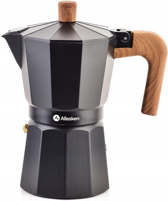 Kawiarka Carina marki Allesken – Twoje domowe espresso w kilka chwil Kawiarka Carina marki Allesken to niezastąpione narzędzie dla każdego miłośnika kawy, który ceni sobie intensywny aromat i głęboki smak prawdziwego espresso. To klasyczna metoda parzenia, która pozwala wydobyć z ziaren to, co najlepsze – bez zbędnych dodatków, za to z maksymalną intensywnością. Wykonana z wysokiej jakości stopu aluminium, równomiernie przewodzi ciepło, dzięki czemu Twoja kawa za każdym razem będzie idealnie zaparzona. Dolny zbiornik został wyposażony w zawór bezpieczeństwa, który kontroluje ciśnienie pary, zapewniając komfort i bezpieczeństwo użytkowania. Pojemność 250 ml pozwala na przygotowanie aż 6 filiżanek aromatycznego espresso, które pobudzą Cię do działania i dostarczą prawdziwej kawowej przyjemności. Ekspres składa się z: - pojemnika na wodę - dolna część - pojemnika na kawę - sitko - pojemnika na zaparzoną kawę - górna część Instrukcja parzenia: Do dolnego naczynia należy wlać zagotowaną wodę w ilości nie przekraczającej ciśnieniowego zaworu bezpieczeństwa. Następnie umieszczamy lejek z sitkiem, do którego wsypujemy świeżo zmieloną kawę. Wsypujemy ją po brzegi, wyrównujemy i usuwamy nadmiar. Kawy nie należy ubijać. Skręcamy oba naczynia i stawiamy na kuchence. Po kilku minutach, gdy wrząca woda przesączy się wskutek ciśnienia przez kawę w sitku, do górnego naczynia napływa zaparzona kawa. Gdy z otworu w dolnym zbiorniku zacznie wydobywać się para, kawiarkę zdejmujemy z kuchenki. Czas zaparzania 4-7 minut. Czarna, matowa powierzchnia w połączeniu z elementami imitującymi drewno sprawia, że kawiarka Carina nie tylko doskonale spełnia swoje zadanie, ale również elegancko prezentuje się w każdej kuchni. Jest kompatybilna z większością kuchenek, z wyjątkiem indukcyjnych, a jej kompaktowy rozmiar sprawia, że możesz zabrać ją ze sobą na wakacje, do biura czy na weekendowy wyjazd. Dzięki ergonomicznemu uchwytowi kawiarka jest wygodna w użyciu, a jej klasyczna konstrukcja sprawia, że przygotowanie kawy to prawdziwy rytuał. Aby zachować jej doskonały wygląd i funkcjonalność na lata, nie zaleca się mycia w zmywarce – wystarczy szybkie płukanie pod bieżącą wodą. Postaw na Carinę i odkryj prawdziwą esencję włoskiego espresso w zaciszu własnego domu! Wzór: HTXA0049 Produkt 1 x kawiarka 1 x kartonik Wymiary pojemność: 250 ml szerokość: 11 cm długość: 15 cm wysokość: 20,5 cm Materiał aluminium tworzywo sztuczne Użytkowanie dopuszczone do kontaktu z żywnością
