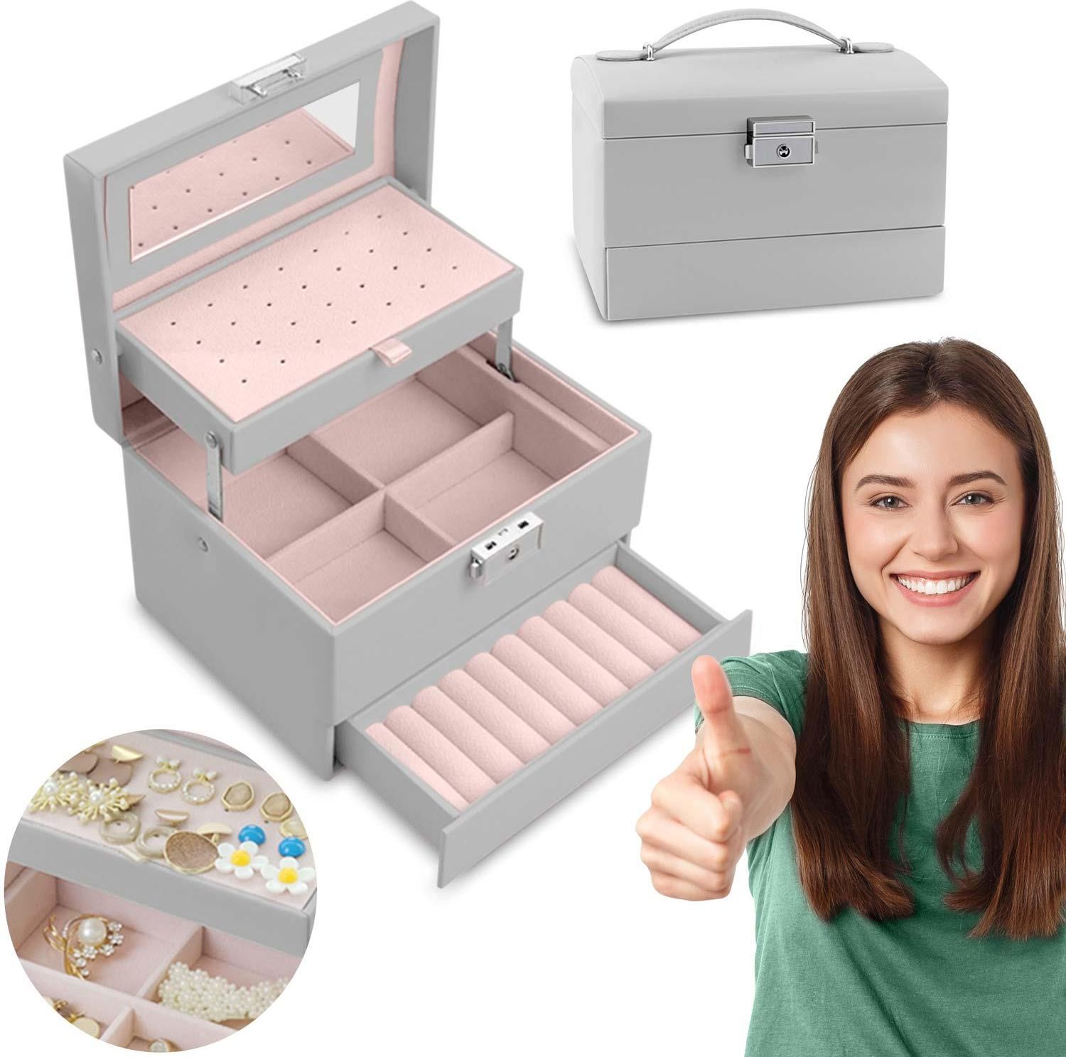 Szkatułka na biżuterię Komfortowa i funkcjonalna: zamykana, lekka, rączka do przenoszenia, poręczna (łatwe przechowywanie) funkcja blokady przed przypadkowym otwarciem. Stylowa: piękny kolor i nowoczesny kształt, idealna zarówno dla dorosłej kobiety jak i dla nastolatki, starannie wykończona. …