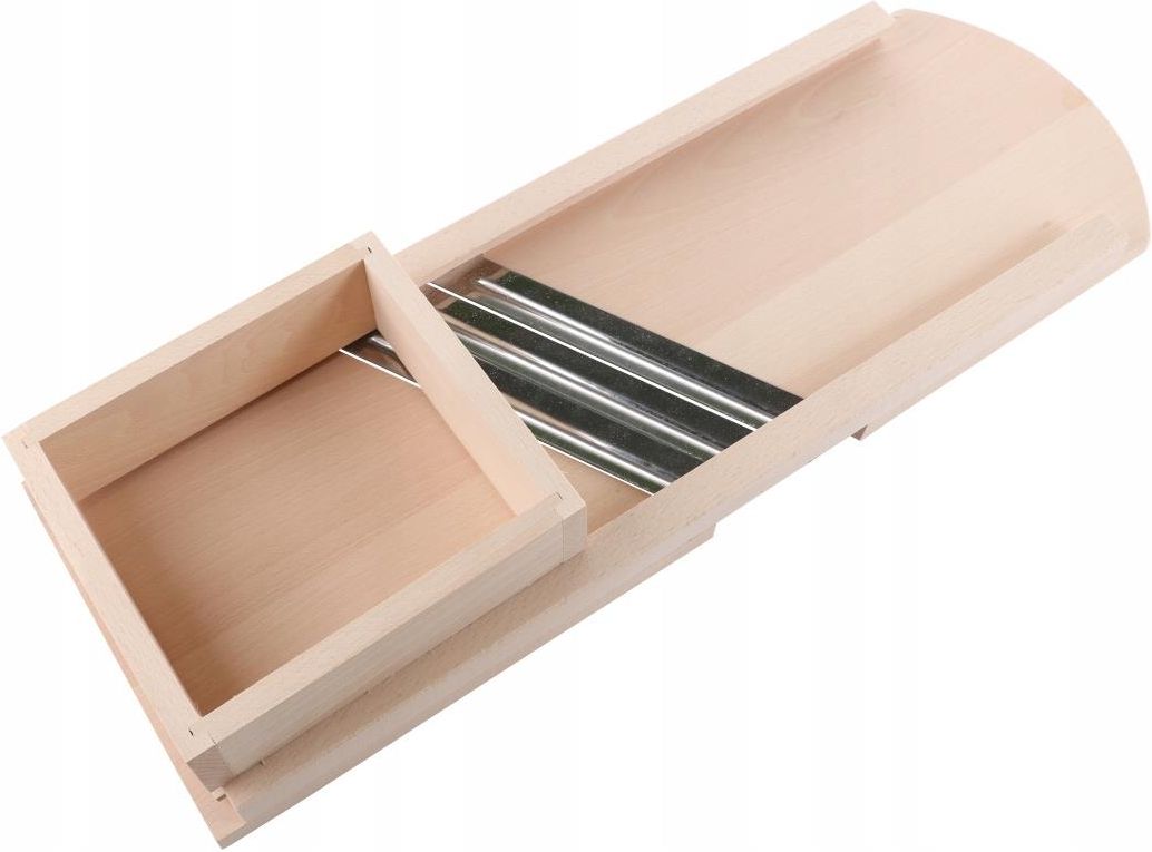 SZATKOWNICA DO WARZYW Przedmiot niezbędny w każdej kuchni. Szatkownica idealna do tarcia kapusty oraz innych warzyw. Cechy produktu Wykonana z twardego drewna bukowego PRODUKT POLSKI Wyposażona w 3 ostrza wykonane z wysokiej jakości stali od dużej odporności na rdzę Możliwość demontażu ostrzy i dokładnego ich wyczyszczenia lub naostrzenia Szatkownica posiada szufladkę wykonaną z drewna, która ułatwia i przyspiesza szatkowanie Szufladka posiada rowki, dzięki czemu idealnie pasuje do szatkownicy Wymiary Wymiary szatkownicy: 66 x 23,5 x 4 cm Wymiary szufladki: 20 x 20 x 6,7 cm