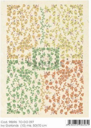 Papier do decoupage B2 50x70 - TO-DO 97 1242 IVY GARLANDS PAPIER DO DECOUPAGE’U TO-DO SOFT PAPER to jedyny papier do decoupage’u na świecie objęty patentem, idealnie dopasowuje się do kształtów dekorowanych przedmiotów. Jego unikatowe właściwości techniczne oraz wysoka jakość artystyczna czynią z niego produkt jedyny w swoim rodzaju, stworzony specjalnie do decoupage’u. Papier ten jest bardzo trwały i wygodny w użyciu. Nie wymaga moczenia przed klejeniem. oryginalne włoskie wzornictwo odporny na wysokie temperatury trwałe kolory bardzo wytrzymały idealny na każdą powierzchnię: metal, porcelanę, karton, drewno, tkaninę, wosk nie zawiera ligniny ani kwasów właściwość tkaniny (elastyczny pod wpływem wilgoci) cienki Wymiar: 50 x 70 cm