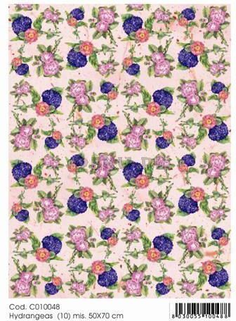 Papier do decoupage B2 50x70 - TO-DO C010048 1903 HYDRANGEAS PAPIER DO DECOUPAGE’U TO-DO ENJOY PAPER odznacza się bardzo dobrym stosunkiem ceny do jakości. Ten klasyczny papier jest cienki i wytrzymały co ułatwia pracę, aby dać satysfakcję nawet początkującym decoupage’ystom. Wymiary 50 x 70 cm.