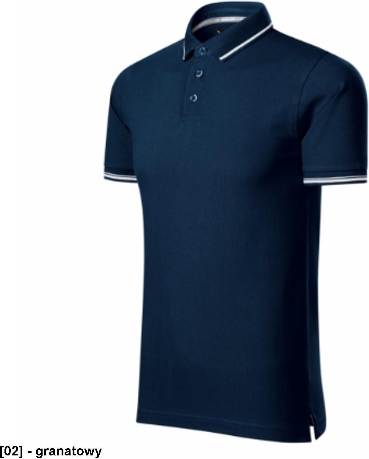 Perfection plain Elastyczna tkanina utrzymująca kształt. Krój slim-fit z bocznymi szwami. Kołnierzyk i mankiety z dzianiny ściągaczowej 1:1 z kontrastowym paskiem. Plisy z 3 guzikami w kolorze materiału. Rozporki w bocznych szwach wzmocnione taśmą w kontrastowym kolorze. Wewnętrzna część lamówki wykończona kontrastową taśmą. Szew na ramionach wzmocniony taśmą. Towar II. gatunku. Towar II. gatunku nie podlega reklamacji. Specyfikacje Gramatura 200 g/m² Skład materiału 95 % bawełna 5 % elastan Prać w 30 °C Minimalny odbiór 1 szt Metoda znakowania odzieży haft, sitodruk, transfer cyfrowy, lithotransfer, sitodruk transferowy, wymiana metki Szt. w woreczku 1 szt Metka tkana
