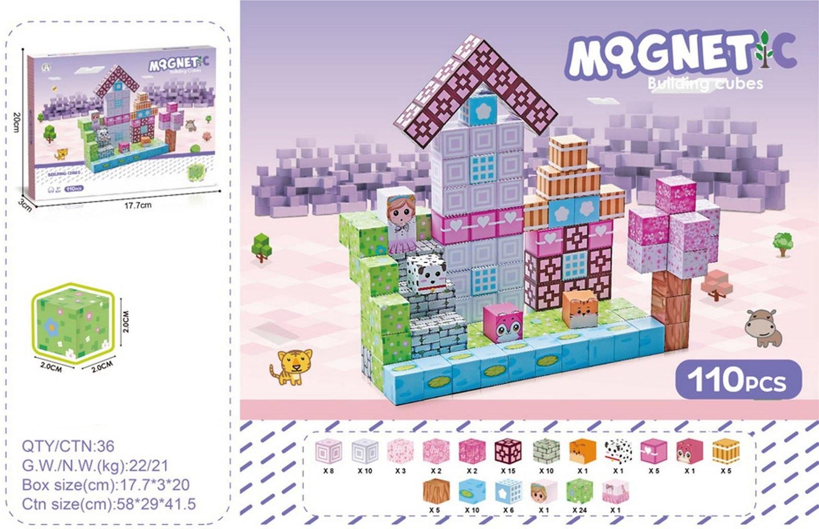 Zestaw Klocków Magnetycznych Kostek 110el. różowe dla dziewczynki Zestaw 110 kolorowych klocków, magnetycznych kostek 3D dla dzieci od trzeciego roku życia. Klocki magnetyczne wykonano z najlepszej jakości materiałów w żywych kolorach z rysunkami przedstawiającymi budynek i zwierzaki. Można z nich zbudować różne konstrukcje. Magnesy neodymowe bardzo solidnie trzymają, tworząc stabilną konstrukcję. Układanie klocków uczy logicznego myślenia i ćwiczy rączki dzieci. Funkcje dla dzieci od trzeciego roku życia, bogato wyposażony zestaw 110 kolorowych kostek 3 D, żywe kolory przyciągają wzrok dziecka i zachęcają do zabawy, wiele możliwości konstrukcyjnych, wykonane z bezpiecznych materiałów najlepszej jakości, wbudowane solidne magnesy neodymowe, idealny zestaw na prezent. Wymiary kostka ok. 2 cm x 2 cm x 2 cm, opakowanie ok. 27,5 cm x 3 cm x 19 cm. Zawartość zestawu 110 kostek z rysunkami budynku i zwierzątek, instrukcja. Specyfikacja Minimalny wiek: 3 lata + Płeć: dziewczynka chłopiec Kolor wiodący: wielokolorowy