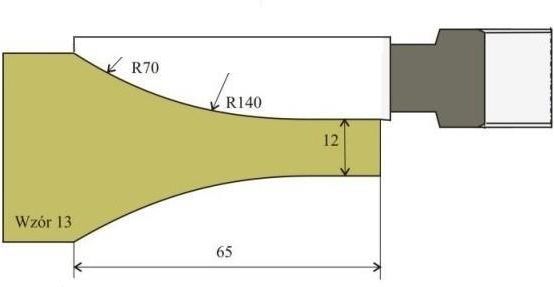 Cechy użytkowe: Frez do kasetonów 026R/2, wzór nr. 13 z ostrzem wykonanym z najwyższej jakości stali szybkotnącej HSS, przeznaczony do obróbki drewna litego Średnica zew.: 190 mm Średnica wew.: 40 mm Promień: Jak na rysunku Ilośc zębow: 4 Maksymalna prędkość obrotowa: 5 000 obr./min Frez występuje w wersji prawo- i lewoskrętnej, przy zamówieniu prosimy o informację o wymaganym kierunku skrawania freza