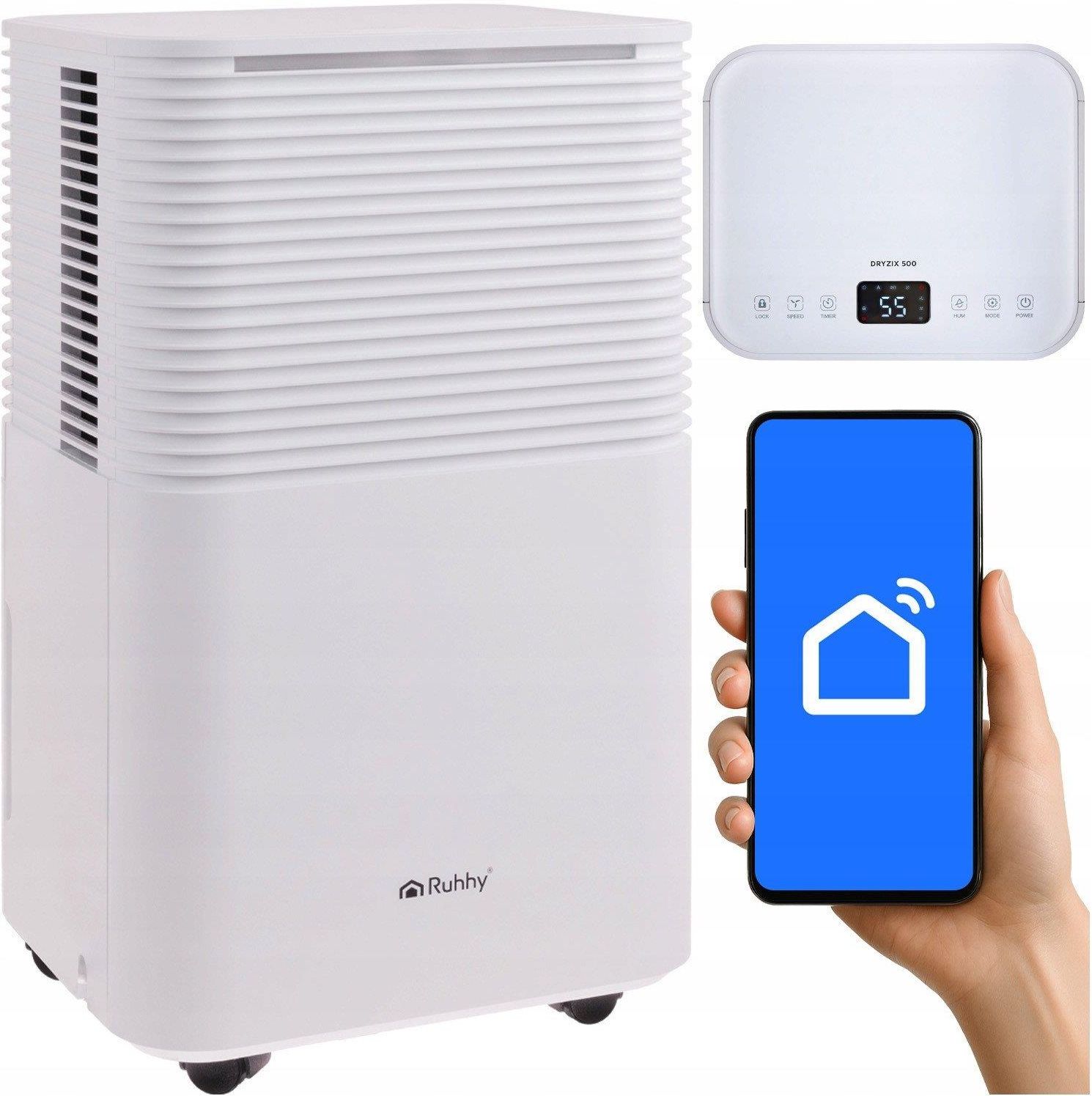 Osuszacz powietrza RUHHY DRYZIX potężny kondensacyjny wydajny pochłaniacz wilgoci 12L/24h, higrostat timer sterowanie na WiFi! Osuszacz powietrzaRUHHY to prawdziwy "kombajn" wśród osuszaczy, idealne rozwiązanie do dużych pomieszczeń ok. 30 m². Dzięki trybowi automatycznemu, programatorowi czasowemu i sterowaniu przez WiFi utrzymasz optymalny poziom wilgotności bez wysiłku. Cicha praca (38 dB), kompaktowy rozmiar i funkcje jak auto-rozmrażanie sprawiają, że to urządzenie sprawdzi się zarówno w sypialni, piwnicy, jak i pomieszczeniu gospodarczym. Wygoda i technologia w jednym – osuszacz powietrza RUHHY, który odmienia domowy klimat urządzenie usuwa do 12 litrów wilgoci na dobę co czyni je prawdziwym "kombajnem" do osuszania powietrza w mieszkaniach, domach, biurach, piwnicach, pralniach oraz podczas remontów od teraz szybko pozbędziesz się pary wodnej, zapobiegniesz powstawaniu pleśni i zadbasz o komfortowy klimat w pomieszczeniach sterowanie WiFi – pełna kontrola zdalnie - dzięki WiFi i aplikacji Smart Life możesz zarządzać urządzeniem z dowolnego miejsca na świecie, włącz lub wyłącz osuszacz z poziomu telefonu, ustaw poziom wilgotności, zmieniaj tryby, korzystaj z timera i integruj urządzenie z Google Home lub Alexa tryby pracy – dopasuj do swoich potrzeb: AUTO – automatyczne utrzymywanie wybranego poziomu wilgotności dzięki wbudowanemu higrostatowi. Ciągły – maksymalna moc działania, idealna do suszenia prania lub osuszania po zalaniach. precyzyjny higrostat - możliwość ustawienia żądanego poziomu wilgotności do 80%, po jego osiągnięciu urządzenie automatycznie się wyłączy, a po przekroczeniu wartości znów uruchomi — dzięki temu oszczędzasz energię i utrzymujesz optymalny mikroklimat cicha praca – tylko 38 dB(A) - osuszacz działa wyjątkowo cicho, dzięki czemu świetnie sprawdzi się w sypialniach, pokojach dziecięcych i biurach, w nocny jest praktycznie niesłyszalny wyraźny wyświetlacz - ułatwia kontrolę nad funkcjami osuszacza timer 0–24 h – pełna automatyzacja - wbudowany programator czasowy pozwala ustawić automatyczne włączanie i wyłączanie urządzenia w przedziale do 24 godzin automatyczne rozmrażanie – niezawodność przez cały rok - funkcja auto-defrost pozwala urządzeniu bezproblemowo pracować również w niskich temperaturach, w razie potrzeby urządzenie automatycznie włączy cykl rozmrażania, aby zapobiec oblodzeniu elementów chłodzących zbiornik 2 l + możliwość stałego odpływu - osuszacz posiada zbiornik na wodę o pojemności 2 litrów oraz możliwość podłączenia rurki spustowej (w zestawie) — dzięki temu może pracować nieprzerwanie przez wiele godzin bez konieczności opróżniania pojemnika filtr wielokrotnego użytku – czyste powietrze - wbudowany filtr siatkowy wyłapuje większe cząstki zanieczyszczeń i kurzu, można go łatwo wyjąć, umyć i ponownie zamontować — bez potrzeby kupowania nowych wkładów. mobilność i kompaktowy design - urządzenie ma zintegrowane uchwyty i kółka transportowe, co ułatwia przemieszczanie między pomieszczeniami Twoje dziecko bardzo lubi przyciski? to już nie problem! - wbudowana ochrona przycisków zabezpieczy urządzenie przed przypadkową zmianą ustawień przez dzieci Czyste powietrze i pełna kontrola – osuszanie z osuszaczem RUHHY, które naprawdę działa Osuszacz powietrza RUHHY został stworzony z myślą o codziennym komforcie i prostocie obsługi – dzięki wbudowanemu higrostatowi urządzenie automatycznie utrzymuje ustawiony poziom wilgotności. Aplikacja zdalnego sterowania poprzez WiFi, automatyczne wyłączanie i czytelny panel sprawiają, że wszystko masz pod kontrolą bez ruszania się z kanapy. Funkcjonalności zastosowane w osuszaczu RUUHY DRYZIX tryb AUTO / higrostat - urządzenie automatycznie włącza się, gdy wilgotność przewyższy ustawioną wartość i zatrzymuje się, gdy osiągnie docelową – eliminuje konieczność ręcznego sterowania sterowanie przez WiFi - podłącz urządzenie do domowej sieci WiFi i steruj zdalnie aplikacją Smart Life (iOS/Android), włącz / wyłącz, zmieniaj tryby, ustawienia wilgotności i timer — nawet będąc poza domem stały odpływ wody - jeśli nie chcesz opróżniać zbiornika ręcznie, podłącz rurkę i zapewnij ciągły odpływ wody, urządzenie automatycznie się zatrzyma, kiedy zbiornik jest pełny auto-rozmrażanie - w niskich temperaturach urządzenie samoczynnie uruchamia cykl rozmrażania, aby zapobiec oblodzeniu i kontynuować pracę Zastosowanie osuszacza RUHHY mieszkania i domy – optymalna wilgotność, brak problemów z kondensacją lub pleśnią sypialnia / pokój dziecięcy – cicha i stabilna praca nocą piwnice, garaże, spiżarnie – ochrona przed wilgocią i korozją remonty, świeżo malowane pomieszczenia – przyspieszenie schnięcia suszenie prania – tryb ciągły wspomaga odprowadzenie wilgoci z ubrań Sterowanie WiFi – pełna kontrola z każdego miejsca Nowoczesny osuszacz powietrza z WiFi to komfort, którego szybko nie będziesz chciał się pozbyć. Dzięki wbudowanemu modułowi WiFi oraz dedykowanej aplikacji Smart Life na systemy Android i iOS, możesz zarządzać urządzeniem z dowolnego miejsca na świecie – wystarczy dostęp do internetu. Osuszacz powietrza polskiej marki Ruhhy – z oznaczeniem „Dobra Marka” Produkty marki RUHHY wyróżniają się wysoką jakością, funkcjonalnością i nowoczesnym designem, co zostało wielokrotnie docenione przez konsumentów. Otrzymane przez markę logo „Dobra Marka” to potwierdzenie, że RUHHY to sprawdzony wybór, który zdobył zaufanie klientów i uznanie w branży. Wybierając produkty RUHHY, stawiasz na trwałość, estetykę i praktyczne rozwiązania, które sprawdzają się w codziennym użytkowaniu. Szczegółowa specyfikacja osuszacza powietrza RUHHY DRYZIX zgodny z europejskimi normami automatyczne wyłączanie automatyczne rozmrażanie