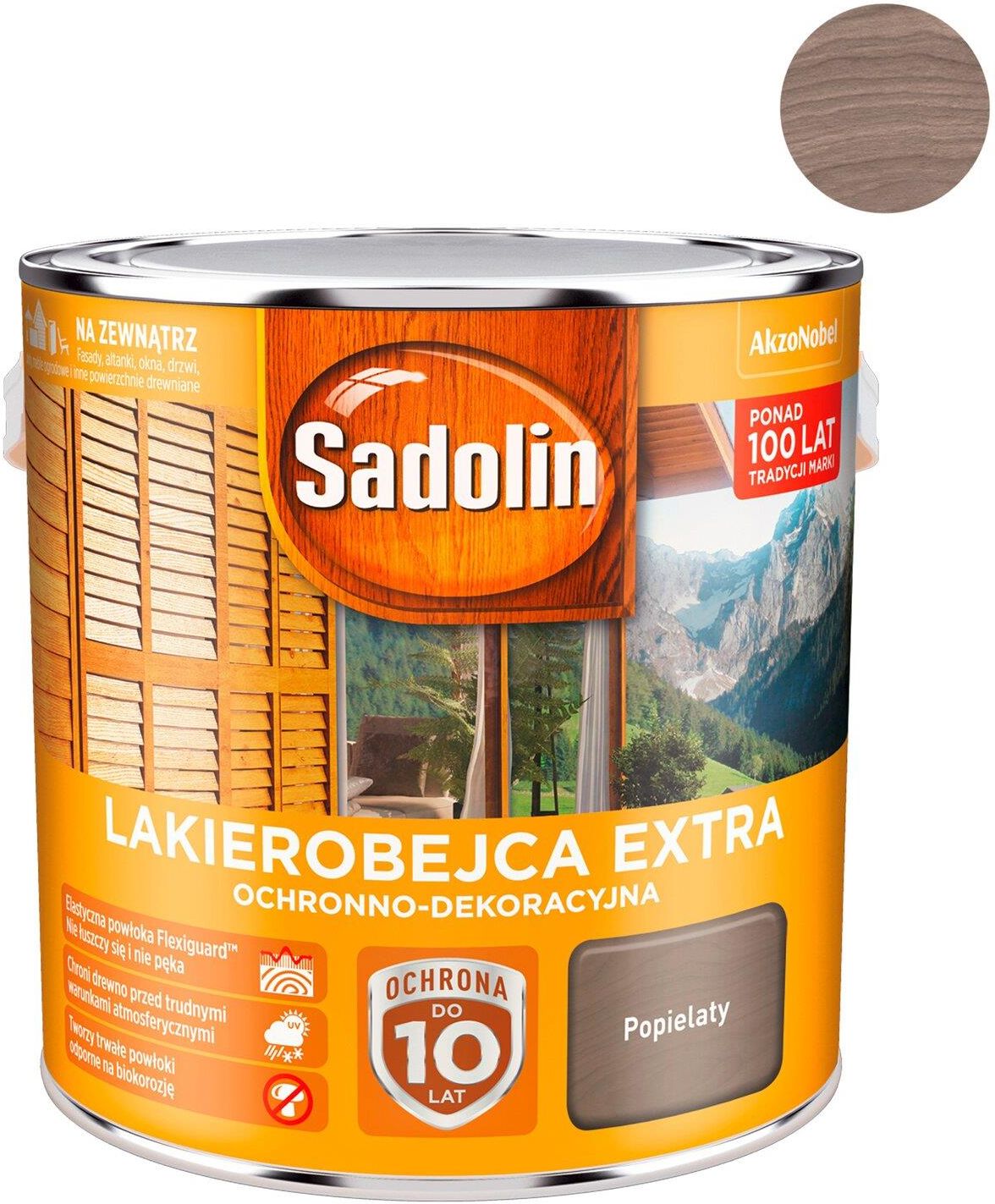 Sadolin Extra POPIELATY 2,5L Sadolin Extra lakierobejca dekoracyjno-ochronna to nowoczesna lakierobejca ochronno-dekoracyjna przeznaczona do zabezpieczania drewna na zewnątrz. do 10 lat ochrony* elastyczna powłoka Flexiguard™, nie łuszczy się i nie pęka, chroni drewno przed trudnymi warunkami …