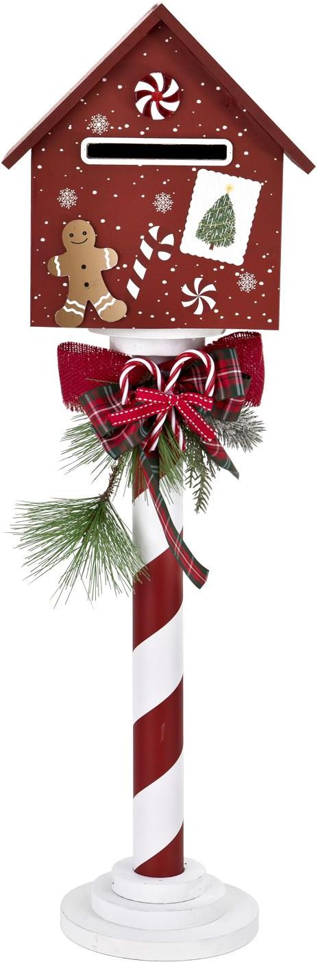 Skrzynka na listy do Św. Mikołaja na stokaju drewniana 8221 Drewniana skrzynka na listy do Świętego Mikołaja. Rewelacyjna propozycja dla każdego, kto uwielbia niespodzianki. Pięknie malowana skrzynka w kolorze czerwonym zawiera wiele szczegółów, takich jak postać ciasteczka z piernika, znaczek z …