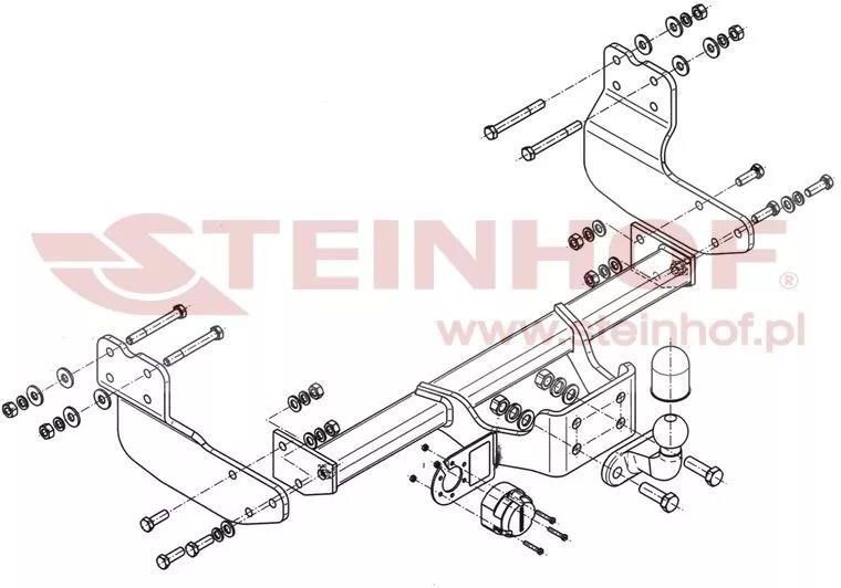 Hak Flanszowy STEINHOF F-301 Dane techniczne Homologacja: E20 Rodzaj kuli: Flanszowa Parametr "D" [kN]: 15,4 Max. uciąg [kg]: 2800 Max. nacisk pionowy [kg]: 112 Hak Flanszowy STEINHOF F-301 pasuje do poniższych aut:Kliknij tutaj aby rozwinąć listę(kliknij markę aby sprawdzić kompatybilne modele) FORD FORD Tourneo Custom L1/L2 [ 2012-2016 ] Wymaga zdjęcia / podcięcia zderzaka: NIE / NIE FORD Tourneo Custom L1/L2 [ 2012-2023 ] Wymaga zdjęcia / podcięcia zderzaka: NIE / NIE FORD Tourneo Custom L1/L2 [ 2016-2023 ] Wymaga zdjęcia / podcięcia zderzaka: NIE / NIE FORD Tourneo Custom L1/L2 [ 2016-2023 ] Wymaga zdjęcia / podcięcia zderzaka: NIE / NIE FORD Transit Custom L1/L2 [ 2012-2016 ] Wymaga zdjęcia / podcięcia zderzaka: NIE / NIE FORD Transit Custom L1/L2 [ 2012-2023 ] Wymaga zdjęcia / podcięcia zderzaka: NIE / NIE FORD Transit Custom L1/L2 [ 2016-2023 ] Wymaga zdjęcia / podcięcia zderzaka: NIE / NIE FORD Transit Custom L1/L2 [ 2016-2023 ] Wymaga zdjęcia / podcięcia zderzaka: NIE / NIE Hak flanszowy STEINHOF to rozwiązanie stworzone z myślą o samochodach dostawczych i pojazdach użytkowych, które wymagają maksymalnej wytrzymałości i niezawodności. Ten typ haka jest wybierany przez kierowców, którzy cenią sobie solidność, prostotę i trwałość konstrukcji. Dzięki brakowi mechanizmów ruchomych hak flanszowy jest całkowicie bezawaryjny i nie wymaga konserwacji. Jego montaż odbywa się w dedykowanych punktach mocowania, co zapewnia idealne dopasowanie do konkretnego modelu auta – bez potrzeby spawania, cięcia czy przeróbek w podwoziu pojazdu. Hak można wykorzystywać do holowania przyczep, montażu bagażników rowerowych lub innych akcesoriów transportowych. W razie potrzeby demontaż kuli jest bardzo prosty – wystarczy odkręcić dwie śruby. W praktyce jednak większość użytkowników pozostawia hak zamontowany na stałe, ze względu na jego trwałość i funkcjonalność. Każdy hak holowniczy STEINHOF produkowany jest z wysokogatunkowej stali i pokrywany trwałą powłoką proszkową, która skutecznie zabezpiecza przed korozją i czynnikami atmosferycznymi. To gwarancja wysokiej jakości, bezpieczeństwa oraz długiej żywotności produktu – przy zachowaniu konkurencyjnej ceny. Produkty marki STEINHOF objęte są 2-letnią gwarancją producenta, co potwierdza ich niezawodność i precyzję wykonania. Co zawiera zestaw Belkę haka idealnie dopasowaną do Twojego auta Kulę flanszową Zestaw montażowy (wsporniki, śruby, podkładki, etc.) Osłonkę kuli (kapturek) Homologację - tabliczka znamionowa na belce - wymagana do rejestracji! Podstawka pod gniazdo elektryczne Instrukcja montażu Hak standardowo nie zawiera w zestawie wiązki elektrycznej. Odpowiednio dopasowane zestawy elektryczne znajdziesz poniżej. Producent lub osoba odpowiedzialna GRUPA STEINHOF SPÓŁKA Z OGRANICZONĄ ODPOWIEDZIALNOŚCIĄ Przemysłowa 27A 33-100 Tarnów sekretariat@steinhof.plOstrzeżenia dotyczące bezpieczeństwa: Montaż wyłącznie przez wykwalifikowany warsztat. Nie przekraczać maksymalnego uciągu i nacisku na kulę określonych przez producenta. Przed każdą jazdą sprawdzić mocowanie i stan haka. Nie używać haka z oznakami uszkodzenia lub luzami. Nie modyfikować elementów haka ani mocowań. Regularnie kontrolować momenty dokręcenia i stan połączeń. Używać wyłącznie do holowania pojazdów zgodnych z homologacją.