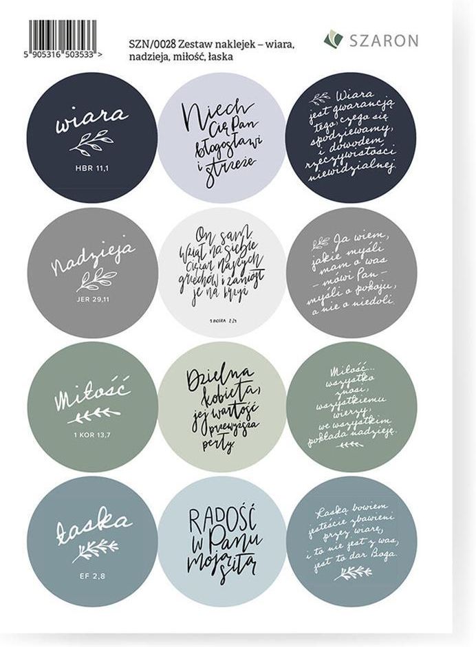 Szaron Zestaw Naklejek Wiara Nadzieja Miłość Łaska Zator