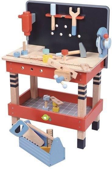 Drewniany warsztat, stolik, Tender Leaf Toys Drewniany warsztat, stolik, Tender Leaf Toys Drewniany warsztat z niezbędnymi akcesoriami. Idealna zabawka dla dzieci lubiących prace manualne! Ten warsztat jest idealny dla początkującego majsterkowicza! Znajdziesz tu wszystko czego potrzebujesz - młotek, śrubokręt, piłę, klucz oraz wiertarkę! W zestawie również poręczna skrzyneczka, do której zapakujesz wszystkie potrzebne narzędzia, gdy trzeba naprawić coś w terenie! Wspaniała zabawa która rozwinie kreatywność malucha! W Tender Leaf Toys przykładamy dużą wagę do szczegółów, dlatego wszystkie narzędzia zostały wykonane tak, aby jak najbardziej przypominały prawdziwe! ~~~ Nasze zabawki produkowane są z drzewa kauczukowego, pochodzącego z kraju położonego na 13 tysiącach rajskich wysp - Indonezji. Do ich pomalowania użyliśmy bezpiecznych i delikatnych farb, dzięki czemu drewno zachowało swój naturalny wygląd i widoczną strukturę. Drewno kauczukowe cechuje się wyjątkową wytrzymałością, co jest niewątpliwym atutem zabawek Tender Leaf Toys. W trosce o naturę, w miejsce każdego drzewa wykorzystanego do produkcji zabawek Tender Leaf Toys, sadzimy nowe drzewo. W Tender Leaf Toys dbamy o zrównoważony rozwój planety i ochronę środowiska naturalnego. ~~~ Zabawki Tender Leaf Toys tworzone są z myślą o najmłodszych przez brytyjską projektantkę Danielle Hanson, która od lat związana jest z branżą dziecięcą. Dzięki jej doświadczeniu, pasji i niezwykłej wyobraźni, zabawki marki Tender Leaf Toys pięknie odwzorowują detale otaczającego nas świata, jak również dbają o rozwój zdolności manualnych i poznawczych dzieci. Wszystkie etapy produkcji zabawek Tender Leaf Toys odbywają się w jednym miejscu, z najwyższą dbałością o środowisko – w egzotycznej Indonezji, kraju słynącym z poszanowania dla własnej kultury i zasobów naturalnych. ~~~ Zestaw zawiera Warsztat ** Śrubokręt ** Klucz ** Młotek ** Wiertarka ** Piła ** Części do budowania (śruby i części do przykręcania) ** Przenośny przybornik Produkt przeznaczony dla dzieci powyżej 3 lat. *************** Wymiary zabawki: 51 x 36.5 x 71 cm Wymiary opakowania: 61.6 x 57.1 x 8.5 cm Drewniany warsztat, stolik, Tender Leaf Toys