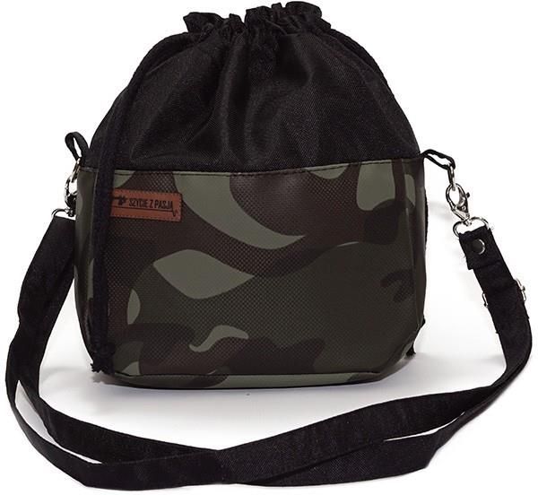 Czarna torebka sakiewka z motywem moro – handmade Wyjątkowa torebka w kształcie sakiewki o nowoczesnym, militarnym charakterze. Wykonana z połączenia czarnej tkaniny i materiału w motyw moro, który nadaje jej lekko sportowego, a zarazem modnego wyglądu. Świetnie pasuje do codziennych stylizacji – jeansów, bluz i kurtek. Torebka posiada jedną komorę główną zamykaną na sznurek troczek, która pomieści najpotrzebniejsze drobiazgi. Dzięki regulowanemu paskowi (78–146 cm) możesz ją nosić na ramieniu lub przez ramię. Pasek jest odpinany, co pozwala na jego wymianę lub łatwe przechowywanie. Najważniejsze cechy produktu Wymiary: 27 cm (wys.) × 26 cm (szer.) × 7 cm (gł.) Długość paska: 78–146 cm, regulowany i odpinany Zapięcie: sznurek troczek Materiał: tkanina wodoodporna + ekoskóra Kolor: czarno–zielony (moro) Kolor okuć: srebrny Wykonanie: handmade – uszyta w Polsce Dla kogo? Torebka Sakiewka Czarna z Motywem Moro to idealny wybór dla osób ceniących wygodę, funkcjonalność i miejski styl. Sprawdzi się na co dzień, na spacer, zakupy lub krótkie wypady za miasto. Lekka, trwała i stylowa – to praktyczny dodatek w niebanalnym wydaniu.