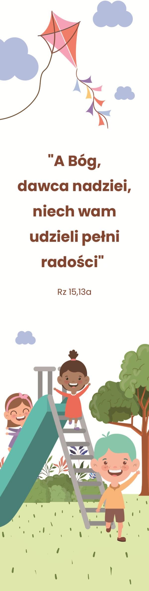 A Bóg, dawca nadziei, niech wam udzieli pełni radości. Rz 15,13a Ta pięknie wykonana zakładka idealnie sprawdzi się jako dodatek do książkowego prezentu dla twojego dziecka oraz jako nagroda dla ucznia za aktywność na zajęciach, wzorowe zachowanie, udział w konkursie itp.