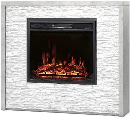 kominek elektryczny, wolnostojący, obudowa kominka, nowoczesny kominek ledowy z funkcją grzania, na prąd, beton