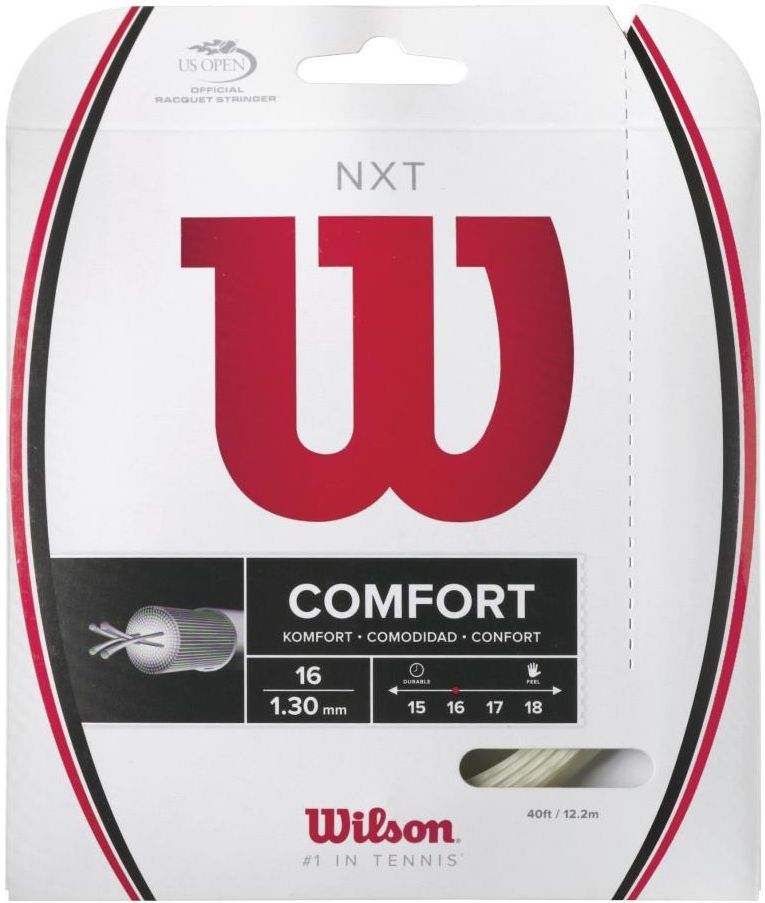 Naciąg tenisowy Wilson NXT set. 12 m. natural Najpopularniejszy naciąg wielowłóknisty o większym sweet-spocie, który zapewnia komfortową moc. Wyposażony w zastrzeżone mikrowłókna xycro impregnowane PU dla większego komfortu i mocy, NXT jest najpopularniejszym na świecie naciągiem wielowłóknistym. Jego rdzeń X-bonded zwiększa utrzymanie napięcia i moc, dzięki czemu gracze mogą nadal generować duże tempo na piłce przez dłuższy czas. Posiada o 10% większy sweet spot niż tradycyjny syntetyczny naciąg jelitowy. Podczas naciągania należy obchodzić się z nim delikatnie i unikać nadmiernego zaciskania.