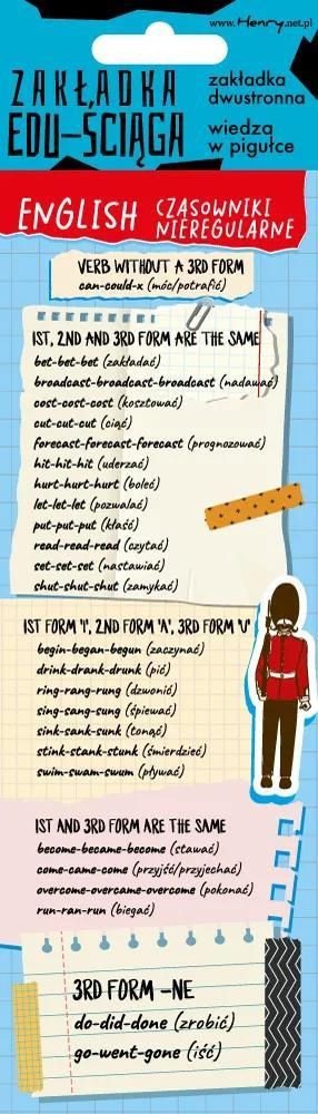 Zakładka Edu Ściąga English Czasowniki Nieregular Zator