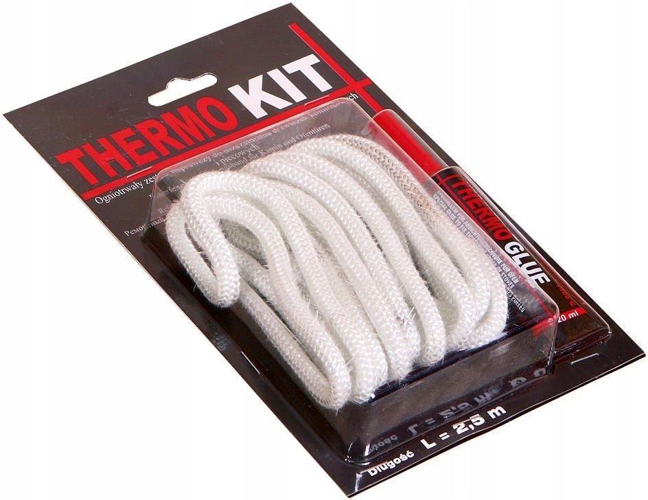 Ogniotrwały zestaw naprawczy do uszczelniania połączeń kominowych i piecowych o średnicy fi 10mm i długości 2,5m + klej, firmy PARKANEX Symbol: SZ10 Zestaw naprawczy THERMO KIT (sznur ceramiczny + klej) do uszczelniania drzwiczek wkładów kominkowych. Przygotowanie podłoża Powierzchnie przeznaczone do nanoszenia zaprawy powinny być oczyszczone, pozbawione tłuszczu oraz resztek sadzy. Zastosowanie Szczeliwo używane do uszczelniania wkładów kominkowych, drzwiczek kotłów, suszarek, komór i pieców pracujących w wysokich temperaturach. Wysoka odporność chemiczna. Zapobiega wydostawaniu się dymu z komory spalania na pomieszczenie - kotłownię. Zaleca się uszczelnienie wszystkich drzwiczek w kotle. Dzięki zastosowaniu szczeliwa bardzo dokładnie izoluje się elementy łatwo nagrzewające się. Szczeliwo nie pozwala przedostać się nagrzanemu powietrzu, zatrzymuje również nagromadzone gazy i opary, dzięki czemu mamypewność bezpieczeństwa użytkowania kotła oraz innych urządzeń wyposażonych w szczeliwa. Sznur zapewnia lepszą prace kotła dzięki doskonałej izolacji. Sposób użycia Dokładnie oczyścić powierzchnie drzwiczek. Nałożyć klej cienką warstwą, a następnie dopasować sznur i mocno docisnąć. Pozostawić do wyschnięcia na 2 - 3 godziny. Dane techniczne Długość = 2,5m Ø = 10mm
