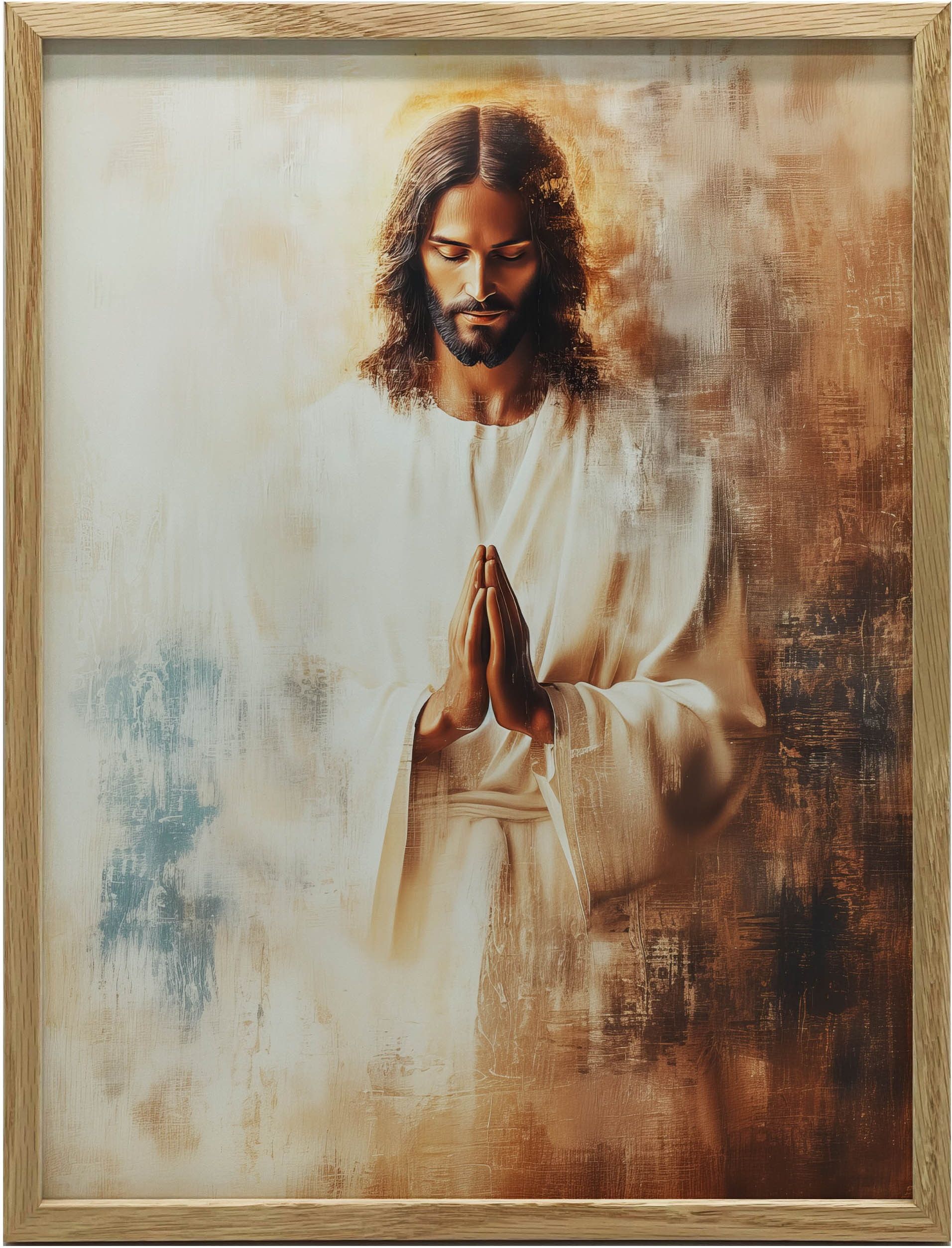 Plakat z wizerunkiem Jezusa Chrystusa w modlitwie to wyjątkowy element dekoracyjny, który wnosi do wnętrza atmosferę spokoju i duchowości. Przedstawia on Jezusa z dłońmi złożonymi w modlitwie, ubranym w białą szatę, co podkreśla jego świętość. Ciepłe tło w odcieniach pomarańczowym, żółtym i …