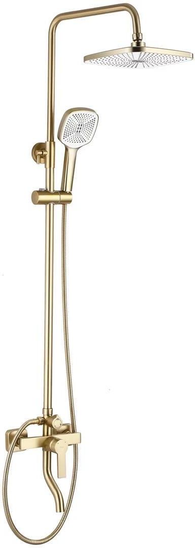 Zestaw Natryskowy ARGUS BRUSH GOLD Producent: Rea - Łazienka z wyobraźnią Skład zestawu: Bateria, wąż prysznicowy ze słuchawką, deszczownica Głowice: Mosiężne Bateria: Jednouchwytowa Montaż: ścienny Wysokość: 144 cm Kolor: Złoty szczotkowany Wymiary deszczownicy: 23x23cm Strumień: Deszczowy …