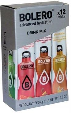 Bolero 3g 12szt Party Mix - Zestaw imprezowy Bolero ! Idealnie nadaje się do drinków, alkoholowych jak i bezalkoholowych. NASZE MIXY BOLERO SĄ DOSTĘPNE W STAŁYCH ZESTAWACHSMAKOWYCH, KTÓRE NIE ULEGAJĄ ZMIANIE. Rozpuść saszetkę w 0,5l-1l wody i rozkręć imprezę.Mix zawiera smaki: CHERRY KOLA - KOLA WIŚNIOWA 1 szt. CUCUMBER - OGÓREK 1 szt. GRAPEFRUIT TONIC - TONIK GREJPFRUTOWY 1 szt. KOLA 1 szt. LEMON TONIC - TONIK CYTRYNOWY 1 szt. MINT - MIĘTA 1 szt. MOJITO 1 szt. PINA COLADA 1 szt. RUM 1 szt. RED SANGRIA - CZERWONA SANGRIA 1 szt. TONIC - TONIK 1 szt. WATERMELON - ARBUZ 1 szt. Odkryj napoje w proszku Bolero! >Bez cukru >Ok. 1kcal/100ml. >Wegańskie >Odpowiednie dla diabetyków >Zawierają elektrolity >Słodzone stewią >Bez aspartamu >Ponad 70 niesamowitych smaków!<</li> >Bogate w witaminę C >Bez glutenu >Bez laktozy >Odpowiednie dla osób chorujących na celiakię Bolero zawiera jedynie naturalne barwniki i aromaty. Jest odpowiednie dla dzieci, diabetyków, osób na diecie, sportowców, kobiet w ciąży jak i karmiących. Nie zawiera kofeiny – z wyjątkiem bolero energy. Napoje Bolero nie zawierają cukru, węglowodanów, glutenu, sztucznych barwników i konserwantów. Rozpuść jedną saszetkę Bolero 3g w 0,5-1l wody lub według własnych preferencji smakowych i zobacz jak proste i przyjemne może być picie wody! BOLERO można dodawać nie tylko do wody, ale też do mleka, kaszy manny, ryżu, serków itd., a jedyną granicą jest tu tylko nasza wyobraźnia.Ponadto, nadaje się idealnie do słodzenia ciast i wszelkich deserów. BOLERO 3g 12szt PARTY MIX ZE STEWIĄ Bolero Party Mix to doskonały zestaw imprezowy dla każdego, kto lubi zabawę i oczywiście orzeźwiające drinki! Ten wspaniały mix zawiera aż 12 różnych smaków, które z pewnością zaspokoją gusta każdego gościa. Bolero Party Mix to idealny wybór dla tych, którzy przede wszystkim szukają alternatywy dla standardowych alkoholi i słodzonych napojów gazowanych. W skład zestawu wchodzą takie smaki jak na przykład: Mojito, Red Sangria, Rum, Pina Colada i Mint. Każdy z nich to wyjątkowy i orzeźwiający smak, który z pewnością zrobi wrażenie na Twoich gościach. Toniki to doskonały dodatek do drinków, który właściwie pozwala zniwelować gorzkość alkoholu i nadać im unikalny smak i aromat. Dlatego też, toniki są bardzo często wykorzystywane przez barmanów i miłośników drinków na całym świecie. W skład Bolero Party Mix wchodzą trzy rodzaje toników: klasyczny tonik, lemon tonic oraz grapefruit tonic. Każdy z nich charakteryzuje się, mianowicie, orzeźwiającym smakiem i idealnie komponuje się z różnymi alkoholami. Toniki to doskonałe rozwiązanie dla osób, które nie lubią gorzkich smaków, a jednocześnie chcą też cieszyć się ulubionymi drinkami bez nadmiernego obciążenia organizmu cukrem. Dodatkowo Bolero Party Mix jest słodzony głównie stewią, co oznacza, że nie zawiera cukru. Dzięki temu jest idealnym wyborem dla osób dbających o swoją dietę i zdrowie. Dodatkowo, napoje w proszku Bolero Party Mix są na bazie naturalnych barwników i aromatów, co czyni je jeszcze bardziej atrakcyjnymi dla osób szukających naturalnych i zdrowych alternatyw. Bolero Party Mix to nie tylko idealny wybór dla tych, którzy chcą zorganizować imprezę bez alkoholu, ale także dla tych, którzy chcą stworzyć oryginalne drinki z alkoholem. Dzięki wspaniałym smakom Bolero Party Mix, można w łatwy sposób stworzyć niebanalne i pyszne drinki z dodatkiem np. rumu. Podsumowując, nie czekaj dłużej i zamów Bolero Party Mix już dziś! Ten wspaniały zestaw napojów w proszku z pewnością sprawi, że Twoja impreza będzie niezapomniana i orzeźwiająca!