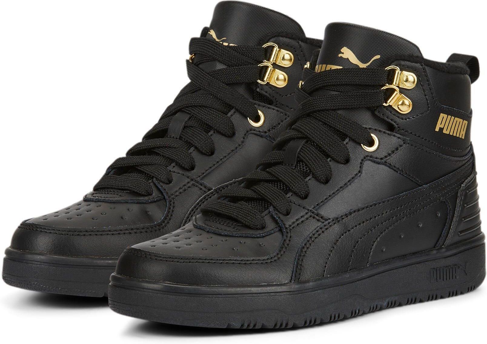 Rebound Rugged SneakerCholewka: skóra/imitacja skóryMateriał wewnętrzny: ciepła wyściółkaWygodna wkładka SOFTFOAM z efektem pamięciZnany dobry komfort noszeniaSzerokość buta: normalnaPodział rozmiaru: normalnyWysokość obcasa: 3 cmAntypoślizgowa gumowa podeszwa zewnętrznaKolor: czarny-czarny-puma team goldProducent: PumaNr art. producenta 387592 01Nazwa modelu: Rebound RuggedTen sneaker w klasycznej koszykarskiej sylwetce z lat 80. to prawdziwy klasyk od modnej sportowej marki Puma. Model Rebound Rugged łączy klasyczny styl sneakersów z optymalnym komfortem. Konstrukcja do kostki z ciepłym wyściełanym wnętrzem jest idealnym towarzyszem na chłodniejsze dni. Ten ponadczasowy casualowy but zawdzięcza swój wysokiej jakości wygląd cholewce ze skóry / skóry syntetycznej, która jest nie tylko przyjemnie miękka, ale także zachwyca oddychalnością. Wyściełana cholewka i wkładka Softfoam zapewniają wyjątkowy komfort. Trwała, odporna na zużycie gumowa podeszwa zewnętrzna jest typowa dla tego modelu. Ten model to stylowy dodatek, który nigdy nie wyjdzie z mody - wręcz przeciwnie, zawsze będzie na czasie. Modnie minimalistyczny wygląd sprawia, że buty te są naprawdę uniwersalne.PUMA od dziesięcioleci jest znaną marką sportową i lifestylową oferującą wysokiej jakości, funkcjonalne i modne buty sportowe i rekreacyjne. Puma Rebound Rugged Sneakers Unisex. Zachowaj ciepło i ochronę w chłodne dni bez uszczerbku dla stylu w naszych butach sportowych Rebound Rugged. Miękka polarowa wyściółka i metalowe haczyki zapewniają gotowość do podboju miasta, nawet gdy temperatura spada. Inspirowana koszykówką sylwetka ma klasyczny krój mid-top, przyczepną podeszwę i wkładkę SoftFoam+, która zapewnia amortyzację przez cały dzień. SOFTFOAM+: wygodna wkładka, która zapewnia miękką amortyzację dzięki wyjątkowo grubej pięcie. Średniej wysokości cholewka. Gumowa podeszwa środkowa. Gumowa podeszwa zewnętrzna. Napis PUMA z boku kostki. Pasek PUMA po wewnętrznej i zewnętrznej stronie. Materiał: skóra, guma. Kolor: czarny/złoty.
