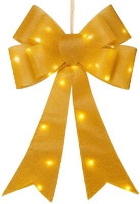 Kokarda dekoracyjna KOOPMAN to wyjątkowa ozdoba, która doda Twojemu wnętrzu świątecznego blasku i elegancji. Dzięki 25 diodom LED o ciepłej barwie światła wprowadza przytulny klimat, rozświetlając drzwi, okna, choinkę czy kominek. Wykonana w złotym kolorze, który określa świąteczny luksus, stanie się centralnym punktem każdej aranżacji. Kokarda ma imponującą długość około 60 cm, co sprawia, że doskonale przyciąga wzrok i podkreśla świąteczny charakter wnętrza. Dzięki zasilaniu na baterie można ją zawiesić w dowolnym miejscu bez konieczności podłączania do prądu. Lekka konstrukcja i praktyczna zawieszka gwarantują łatwy montaż, a solidne wykonanie pozwala na jej wielokrotne użytkowanie. To uniwersalna dekoracja, która doskonale pasuje zarówno do nowoczesnych, jak i tradycyjnych aranżacji.