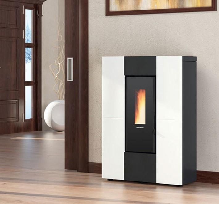 Marilena Plus Wąski piec peletowy z dystrybucją gorącego powietrza Cechy: Zewnętrzna okładzina z majoliki • Malowana stalowa obudowa • Zbiornik hermetyczny • Wentylacja pomieszczeń z funkcją Komfort • Kanał z dedykowanym silnikiem (termostatyczny, możliwość wykluczenia, zasięg do 8 metrów) • 3 …