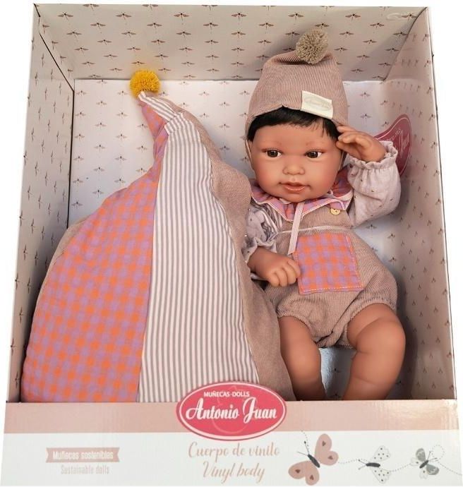 Dziewczynki uwielbiają wyjątkowe lale, które można kąpać i przebierać. 42 - centymetrowy, winylowy bobas Pipa circus to nowa wersja bestsellerowego modelu 50036. Bobas w uroczej czapeczce jest dostępny w zestawie z kolorową pufą siedziskiem dla lali. Brązowooka dziewczynka posiada pozostałość pępowiny i zaznaczoną płeć. Zachwyca piękna, pogodna, realistycznie wyglądająca twarzyczka. Lalka hiszpańska renomowanej marki Antonio Juan wyróżnia się dopracowanymi detalami, takimi jak: długie rzęsy, ręcznie malowane brwi, usta i paznokcie, imitacja śliny w kąciku ust, czy też wyrzeźbione włoski i fałdki. Bobas winylowy 50426 w zestawie z luksusowymi ubrankami i akcesoriami Lalka hiszpańska Pipa 50426 ma ruchome rączki, nóżki i głowę, dzięki czemu można ułożyć ją w różnych pozycjach. Atrakcyjności zabawie dodaje stylowy, wysokiej jakości, ręcznie szyty outfit: muślinowa bluzeczka w komplecie z krótkimi ogrodniczkami na szelkach, wiązana czapeczka z pluszowym pomponem. W zestawie jest także kolorowa miękka pufa, uszyta z łączonych materiałów siedzisko dla bobasa, idealne do zabawy i oryginalnego wyeksponowania zabawki w pokoju dziecięcym. Luksusowa lalka hiszpańska marki Antonio Juan dodaje szyku każdej kolekcji zabawek! Recien Nacida Pipa, w całości wykonana w Hiszpanii, przeznaczona jest dla dzieci od 3. roku życia. Spełniająca wszystkie normy bezpieczeństwa, winylowa lalka jest zapakowana w solidne, oryginalne, biało-różowe pudełko z wieczkiem. Z powodzeniem spełnia rolę opakowania prezentowego. Dziewczynka może wykorzystywać je jako łóżeczko dla bobasa.