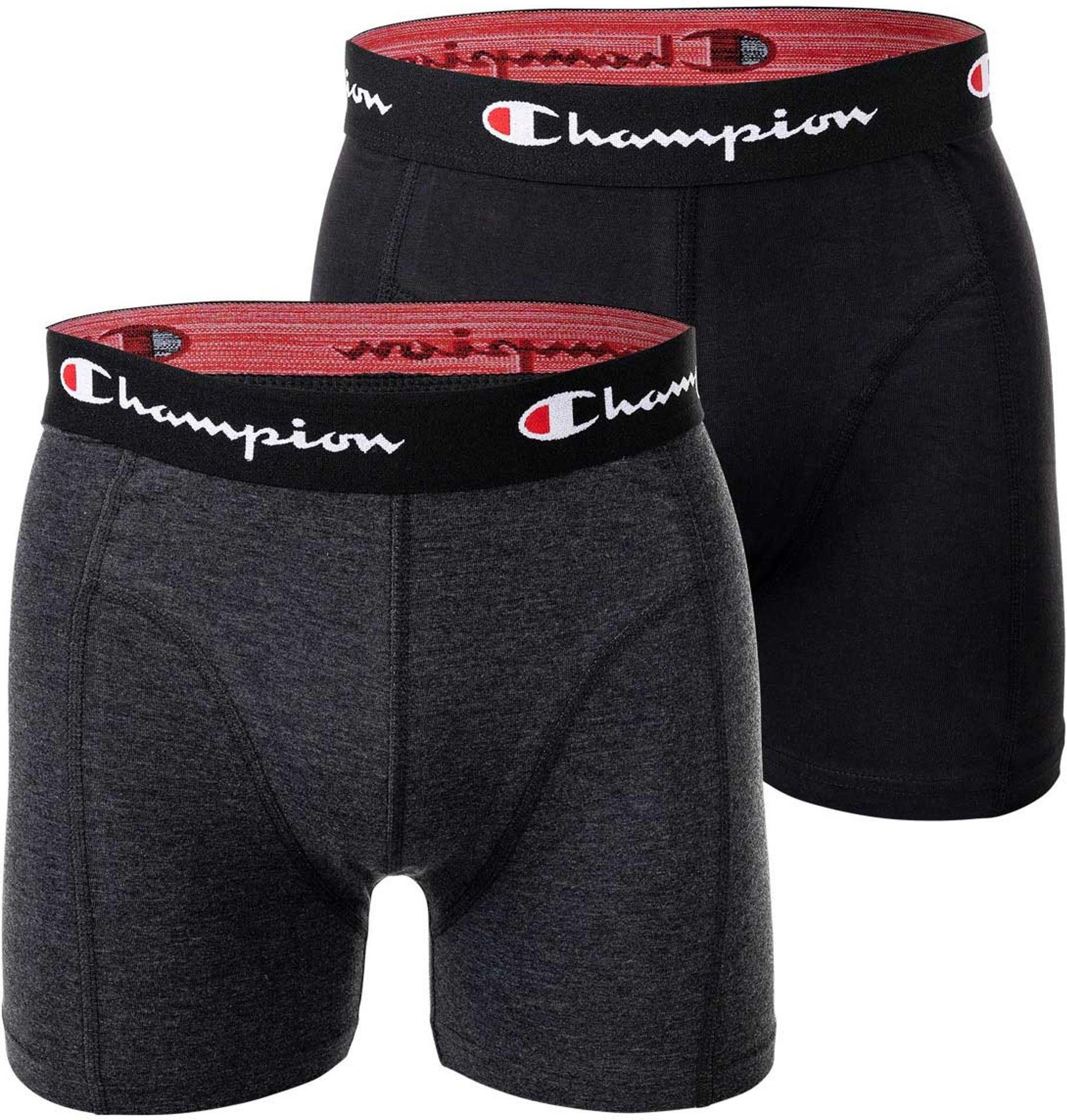 Bokserki męskie Champion, 2-pak - bawełna, logo w pasie, jednokolorowe, czarne/szare w cętki 2XL Zawiercie