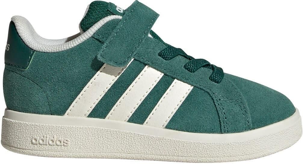 Buty adidas Grand Court 2.0 EL I Jr Właściwości Buty dla dzieci adidas Grand Court 2.0 EL I Buty adidas dla dzieci łączą w sobie komfort i nowoczesny design. Lekkie buty zapewniają wygodną ochronę stóp na co dzień. Mają bardzo miękką podeszwę i gładką, przypominająca skórę cholewkę, która jest delikatna dla stóp malucha. Praktyczne zapięcie na rzep. Elastyczne gumki przypominające sznurowanie.